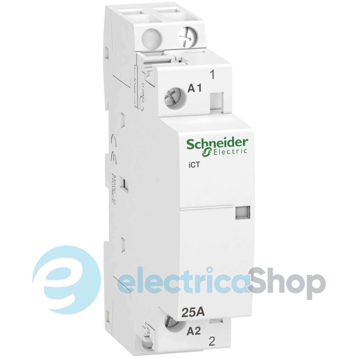 — Контактори iCT застосовуються в мережах змінного струму (AC) для дистанційного керування: освітленням, опаленням, вентиляцією, ролетами, подачею господарської гарячої води тощо.Основні показники контактора: