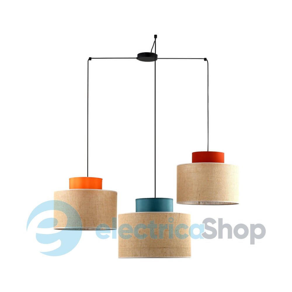 Підвісний світильник TK-Lighting DUO JUTA MIX BIG 3 1543 буде чудово виглядати в сучасних інтер'єрах. Арматура виготовлена з металу, плафон із тканинним абажуром.