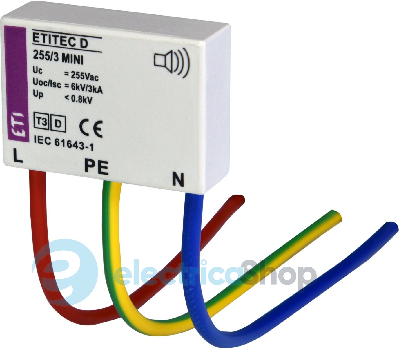 Застосування обмежувача перенапруги ETITEC L3 255/3/6 - даний тип обмежувачів має мініатюрні габаритні розміри, що дозволяє їх встановлювати у монтажні коробки, кабельні розподільні канали та світильники LED. В обмежувачі застосовується звукова сигналізація пошкодження варисторного елемента , що вказує на необхідність заміни пристрою. Відповідає стандартам EN 61643-11, IEC 61643-11 та UL1449-4.
