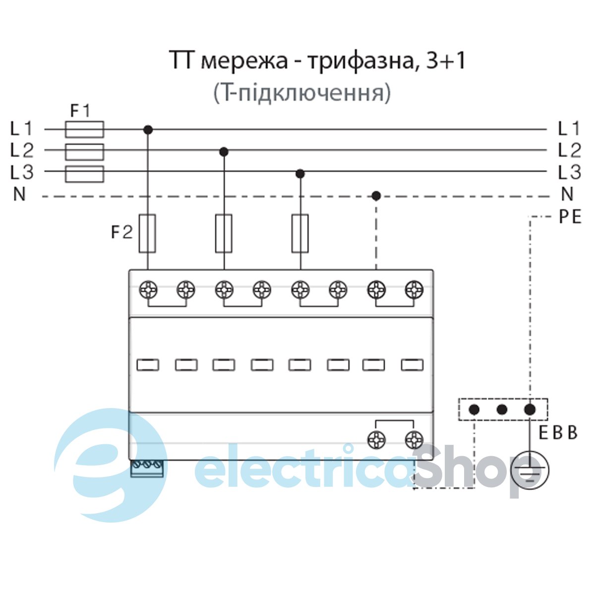 Іскровий розрядник використовується у якості гальванічної розв’язки між N-PE провідниками у системах заземлення ТТ.ПЗІП тип моделі: ETITEC T WENT 320/25 (3+1, 8p, TT) групи B+C (тип I+II)