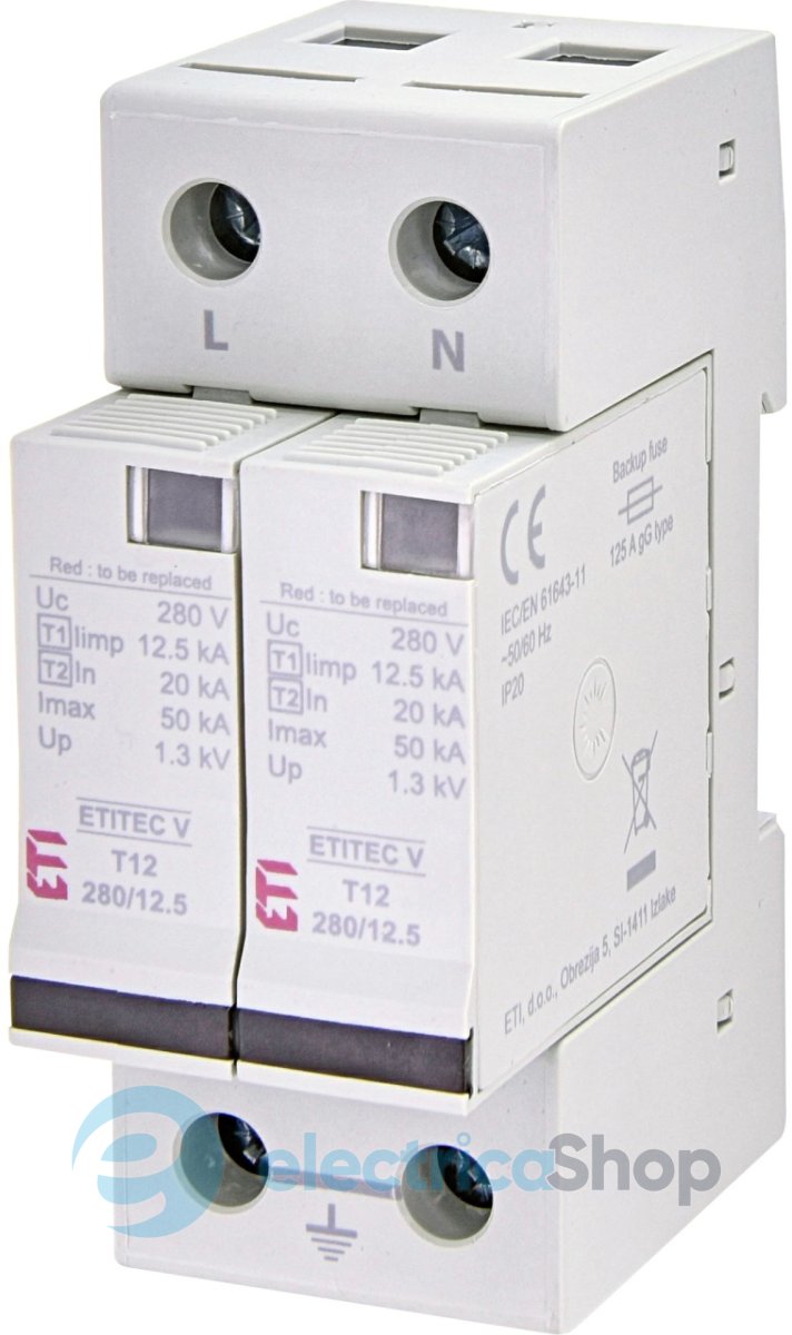 ОПН ETITEC V T12 (12,5kA) тип 1+0, 2+0, 3+0, 4+0 мають стандартну глибину корпусу 67мм. Встановлення можливе у щити ECM, ECТ, ECG, ERP, ECH, ACT, WRP, GT, HXS, EPC, GSXКонструкція: