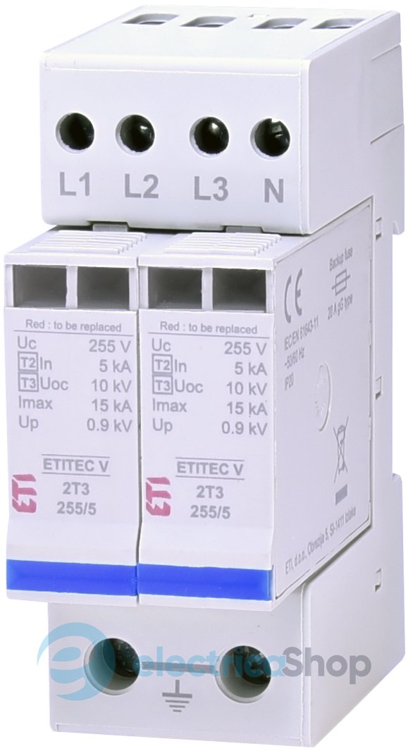 ПЗІП ETITEC V 2T3 255/5 (4+0) відноситься до III типу (група D) пристроїв що обмежують перенапругу.