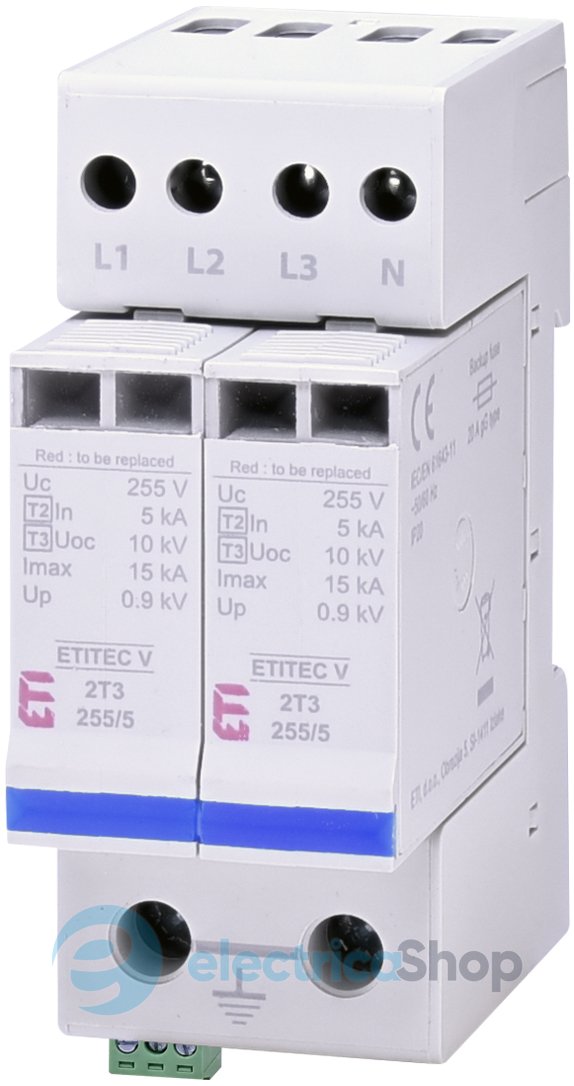 ПЗІП ETITEC V 2T3 255/5 (4+0) RC відноситься до III типу (група D) пристроїв що обмежують перенапругу.