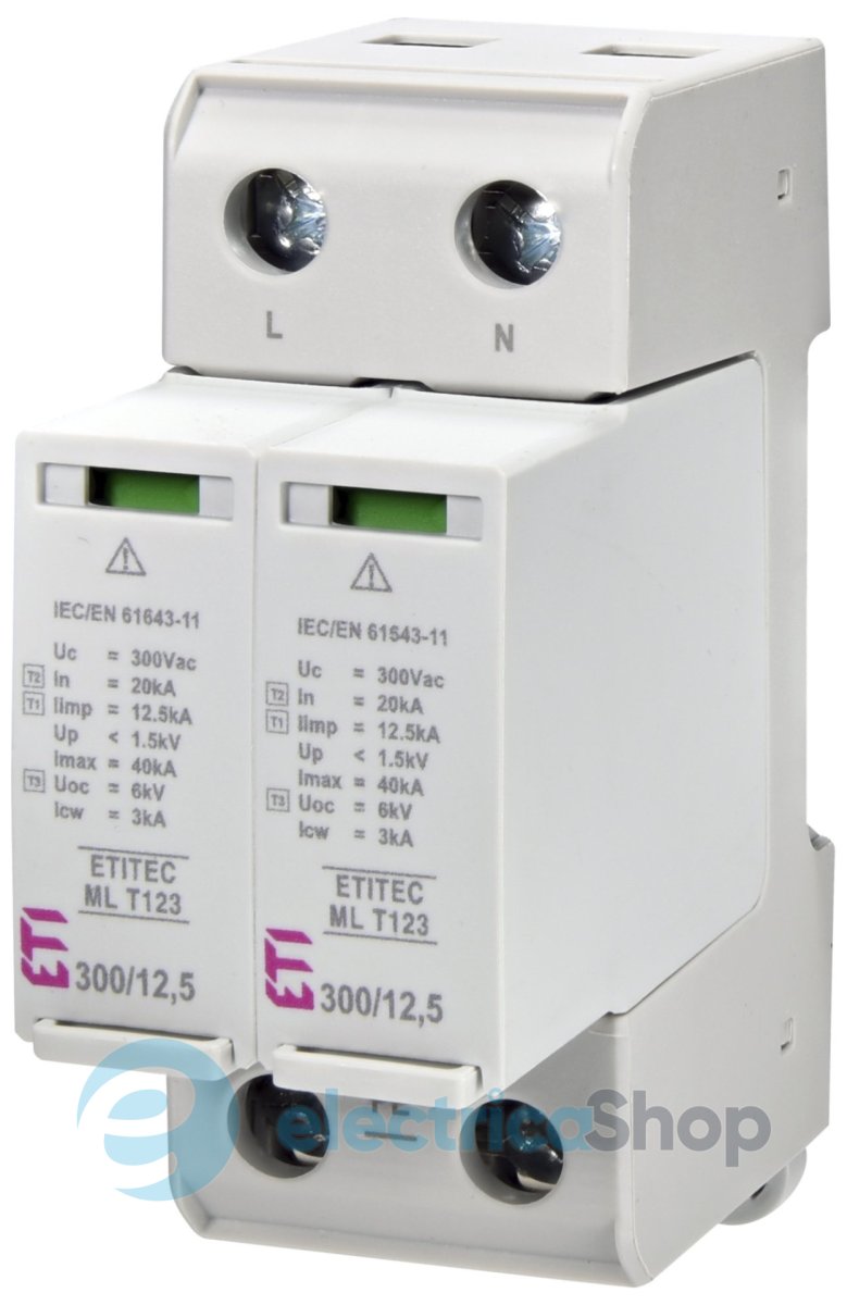 Обмежувач перенапруги тип I+II+III, ETITEC ML T123 300/12,5 (1+1, 2p, TТ) ETI 2440669