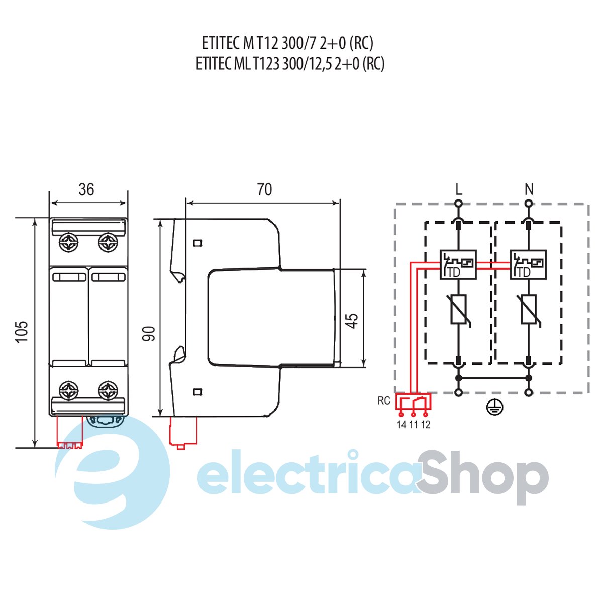 Обмежувач перенапруги тип I+II+III, ETITEC ML T123 300/12,5 (1+1, 2p, TТ) RC ETI 2440670