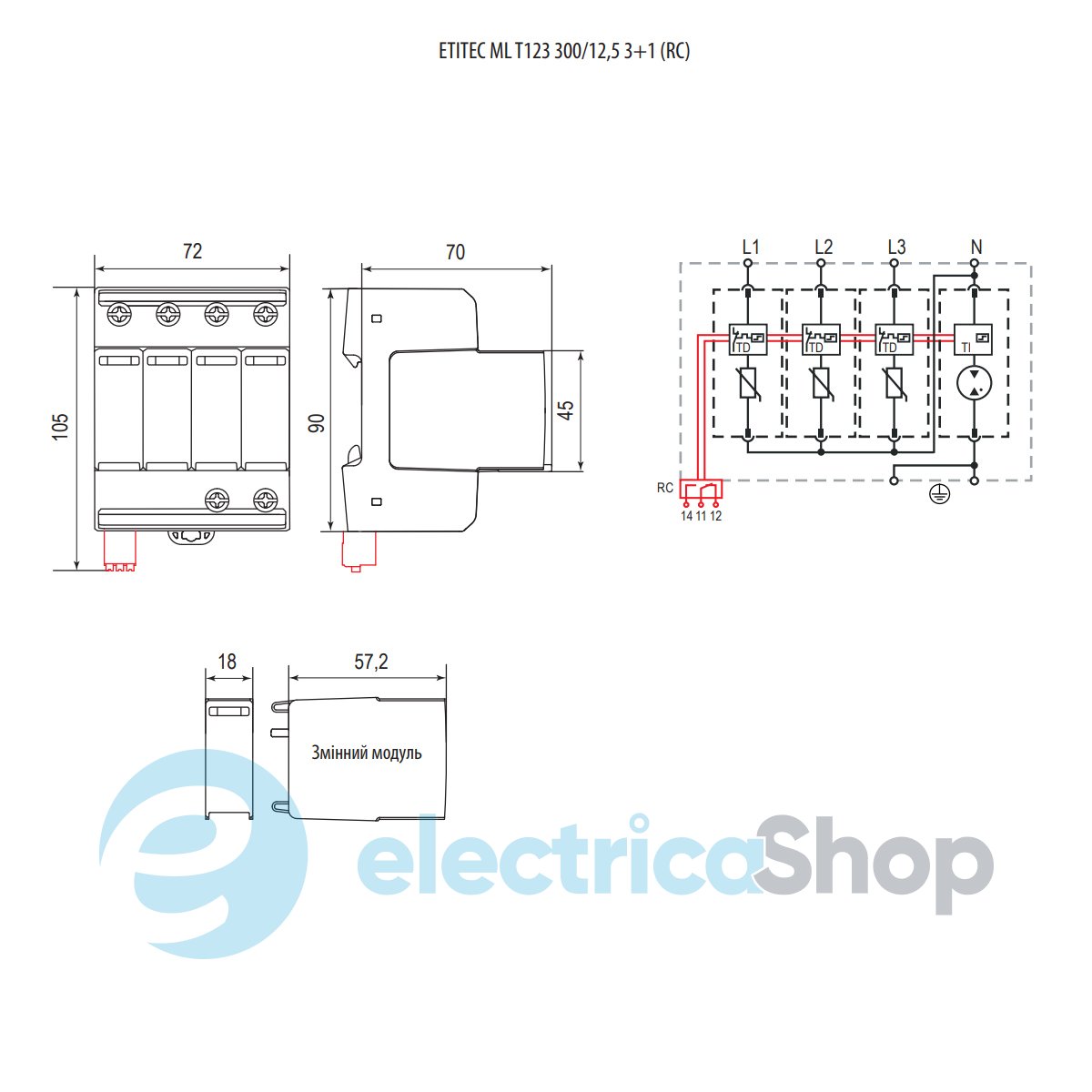 - Тип пристрою: ETITEC ML T123 300/12,5 (3+1, 4p, TT)