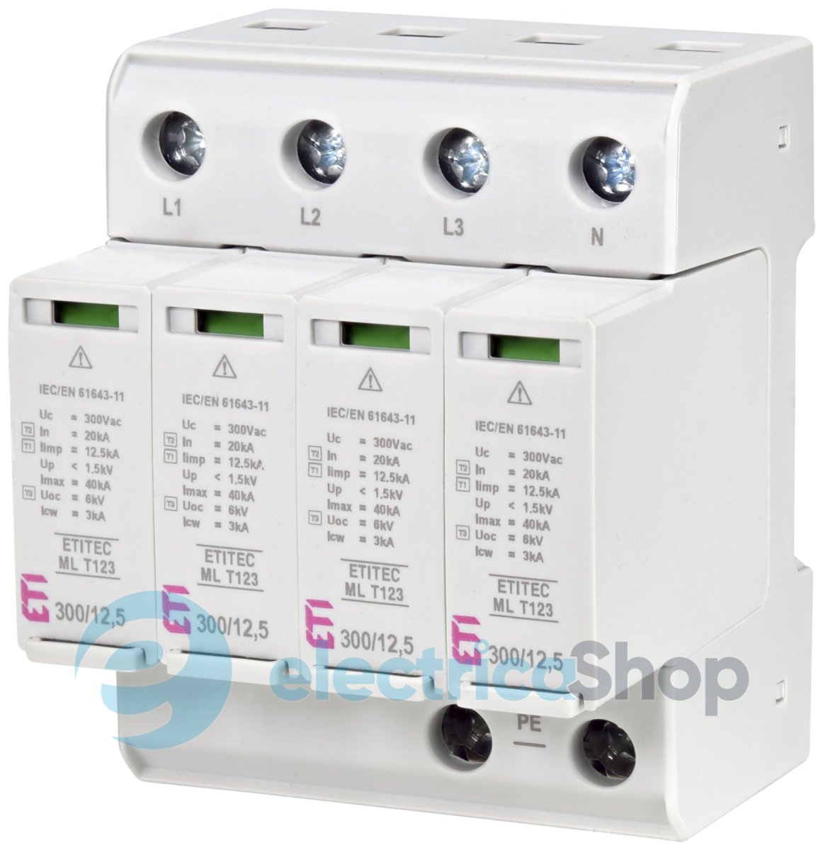Обмежувач перенапруги тип I+II+III, ETITEC ML T123 300/12,5 (1+0, 1p, TNC) RC ETI 2440662