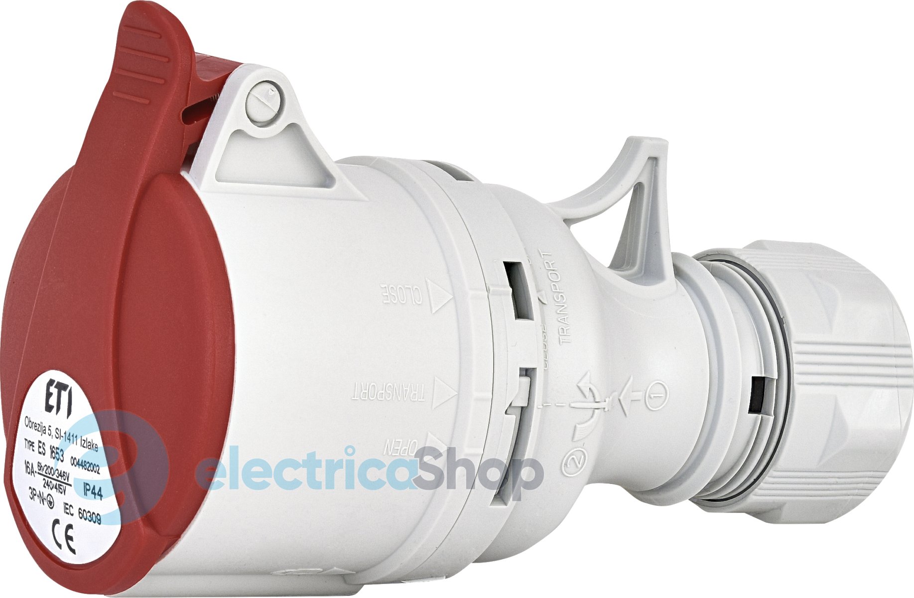 CEE Socket, ES 1653, Ступінь захисту IP IP44, Кількість полюсів 3+N+PE, Номінальний струм (A) 16, Номінальна напруга (В) 400, Тип розетка вилка Розетка кабельна, Максимальна сила струму 16 A, Сила струму відповідно до UL / CSA (для UL-виконання) A, Кількість полюсів 3 , Напруга відповідно до EN 60309-2 і колір 400 В (50+60 Гц) червона , Положення ключа в годинах / Орієнтація заземл. контакту (по цифербл. годинника) h, Маркувальне забарвлення Червоний , Номер кольору Ral , Ступінь захисту IP IP44 , Спосіб підключення Гвинтова клема , Кут підключення Прямолінійний (-а) , Кабельний ввід Ущільнювальна гайка , Матеріал Пластик , Виконання для збройних сил