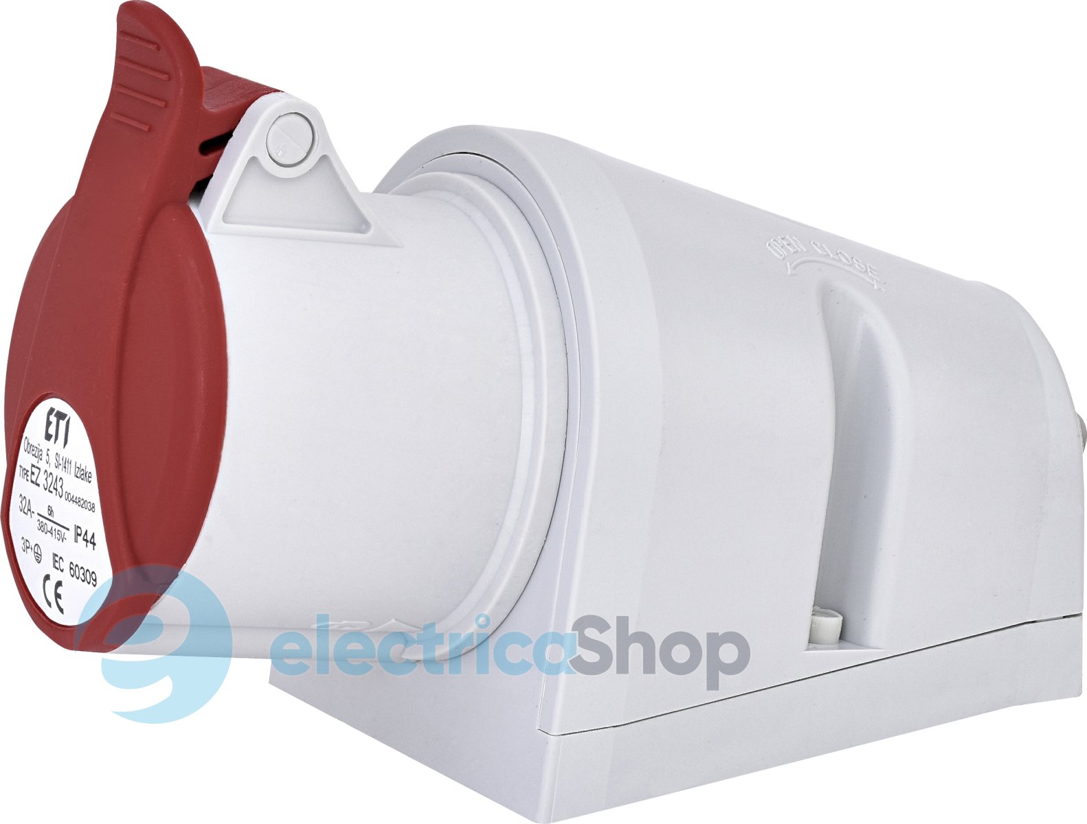 CEE Socket, EZ 3243, Ступінь захисту IP IP44, Кількість полюсів 3+PE, Номінальний струм (A) 32, Номінальна напруга (В) 400, Тип розетка вилка Розетка настінна, Модель/Виконання Відкритої установки , Максимальна сила струму 32 A, Сила струму відповідно до UL / CSA (для UL-виконання) A, Кількість полюсів 3 , Напруга відповідно до EN 60309-2 і колір 400 В (50+60 Гц) червона , Положення ключа в годинах / Орієнтація заземл. контакту (по цифербл. годинника) 6 h, Маркувальне забарвлення Червоний , Номер кольору Ral , Ступінь захисту IP IP44 , Спосіб підключення Гвинтова клема , Кабельний ввід , Матеріал Пластик , Тип монтажу/Тип кріплення Внутрішнє закріплення , Ізольований монтаж , Виконання для збройних сил