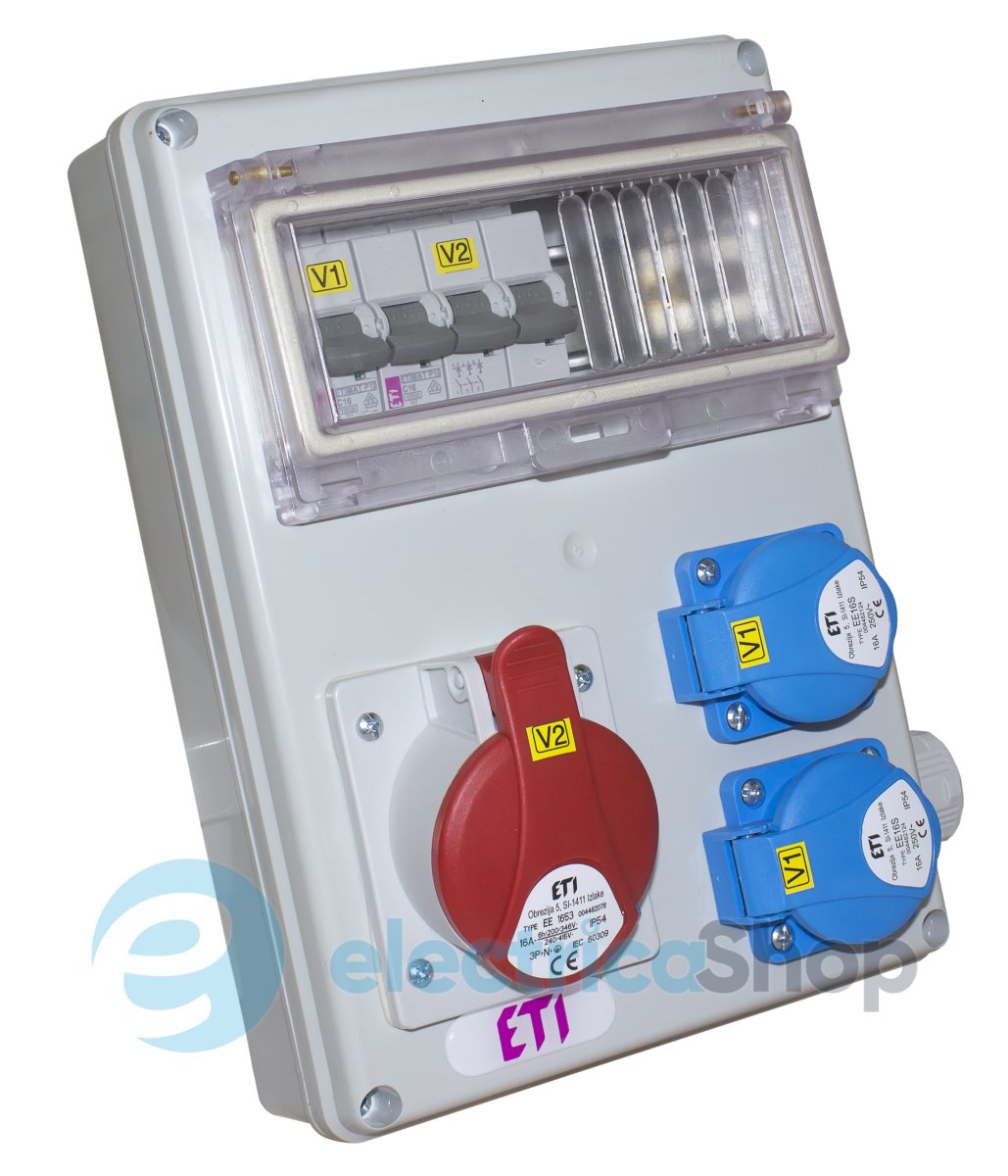 CEE Socket, EDS8 6-2/0-5 16, Ступінь захисту IP IP44, Номінальний струм (A) 16, Номінальна напруга (В) 250, Тип розетка вилка 6xSCHUKO, MCBs_applied_EDS 6xC16/1, Додаткові пристрої з перемикачем, Кількість полюсів 8