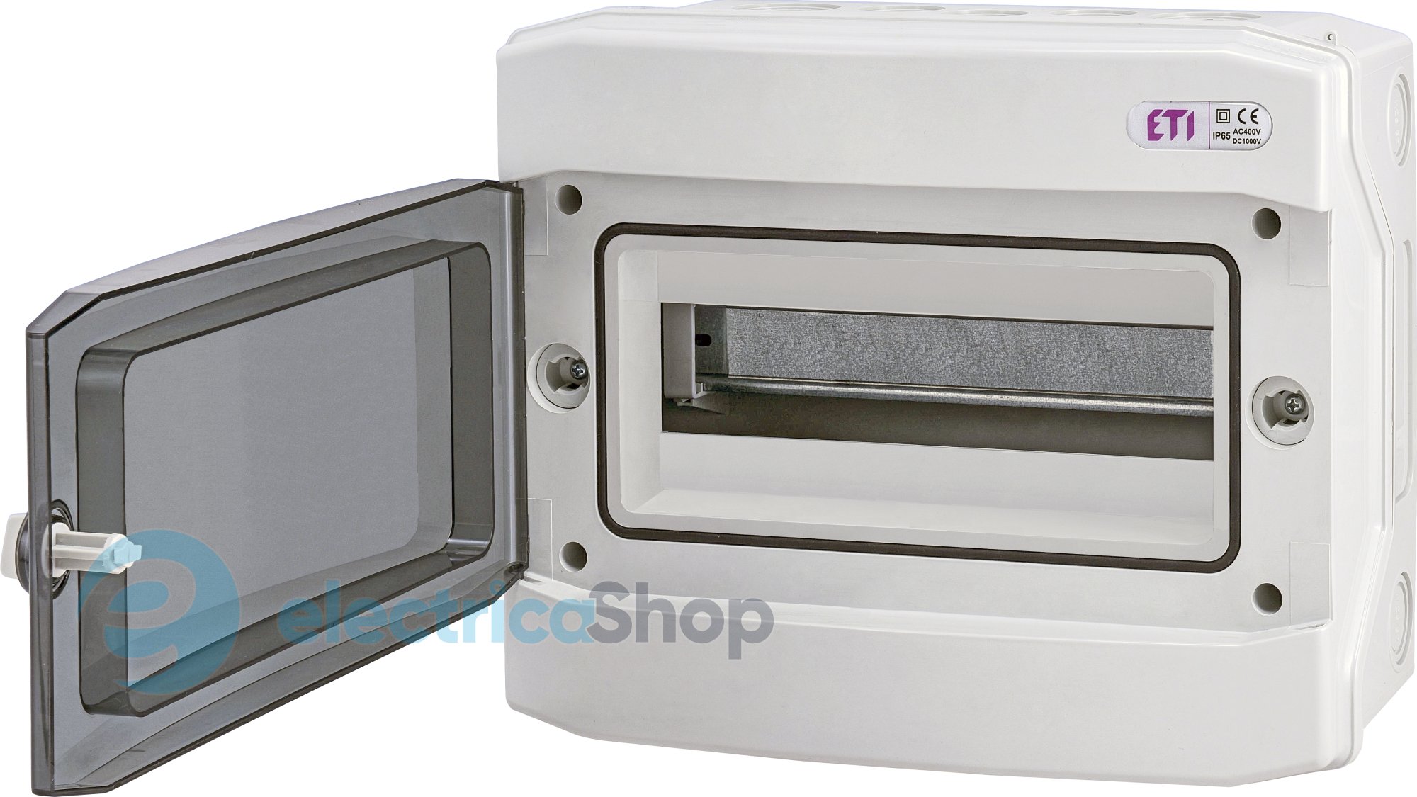 Герметичний розподільний щит ETI ECH-12PTu навісного монтажу (постачається в індивідуальній упаковці) та використовуються в житловому, промисловому будівництві, а також в фотоелектричних системах сонячних станцій для монтажу захисних, сигнальних і розподільних пристроїв модульного виконання і забезпечують ступінь захисту ІР65.