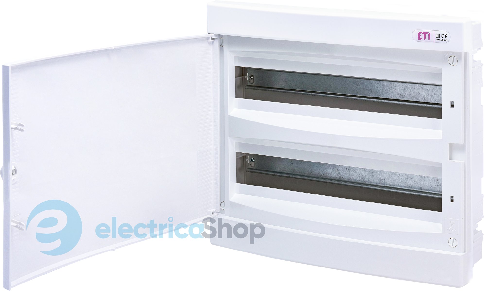 Розподільчий щит вбудованого монтажу ECM 2х18 PO (код 1101084) застосовуються в житловому та промисловому будівництві для монтажу захисних, сигнальних та розподільних пристроїв модульного виконання та забезпечують ступінь захисту ІР40.