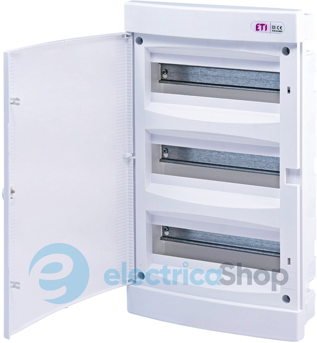 Розподільчий щит вбудованого монтажу ECM 36 PO (код 1101017) застосовуються в житловому та промисловому будівництві для монтажу захисних, сигнальних та розподільних пристроїв модульного виконання та забезпечують ступінь захисту ІР40.