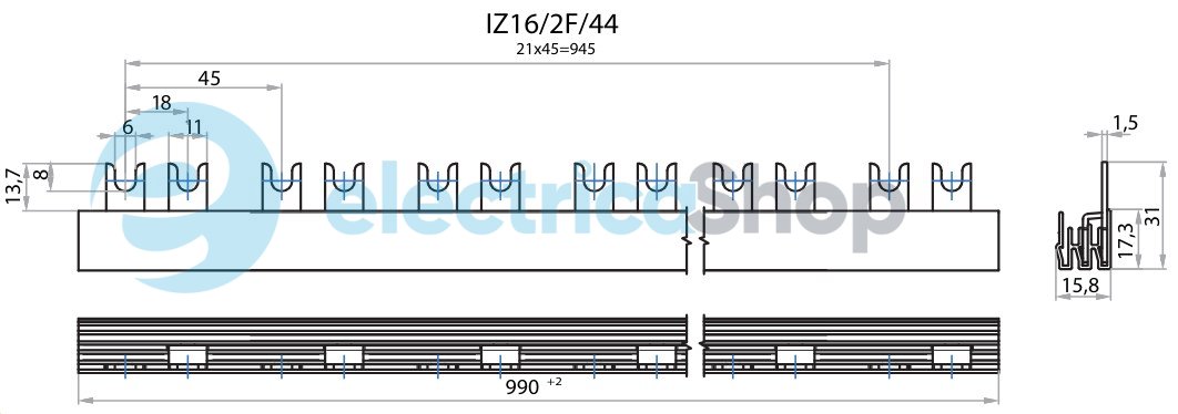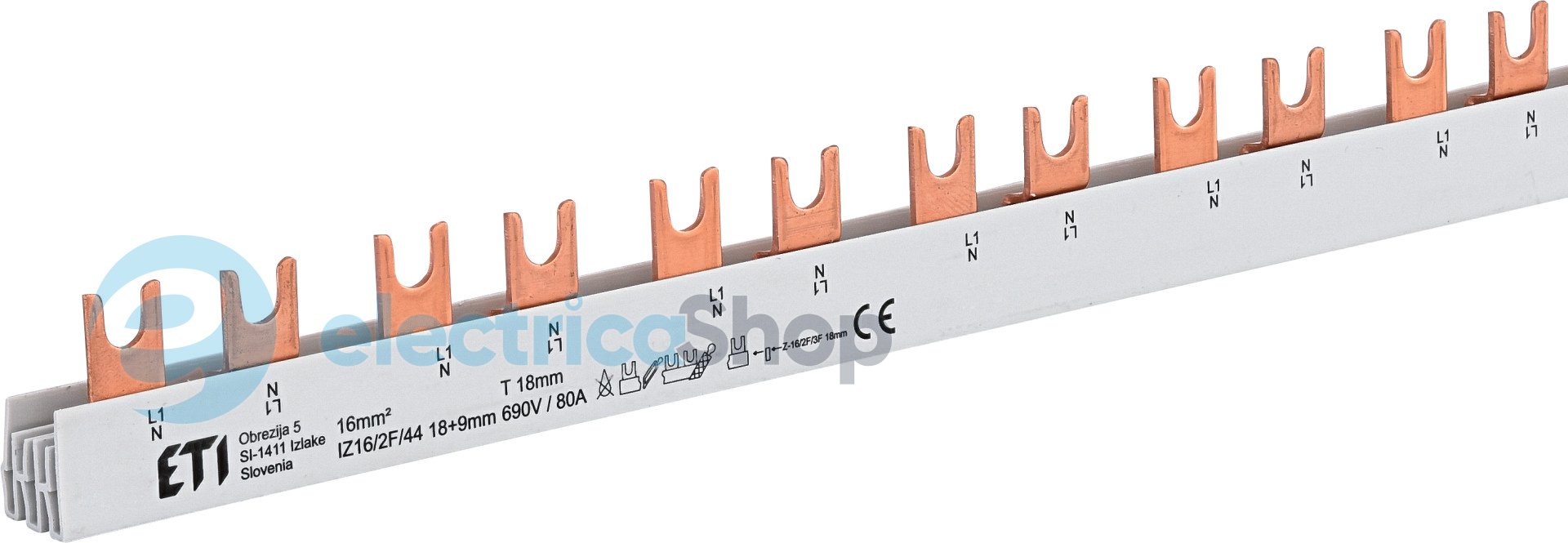 • Шина електромонтажна для ETIMAT P6, ETIMAT P10 (вилковий тип) 16mm2