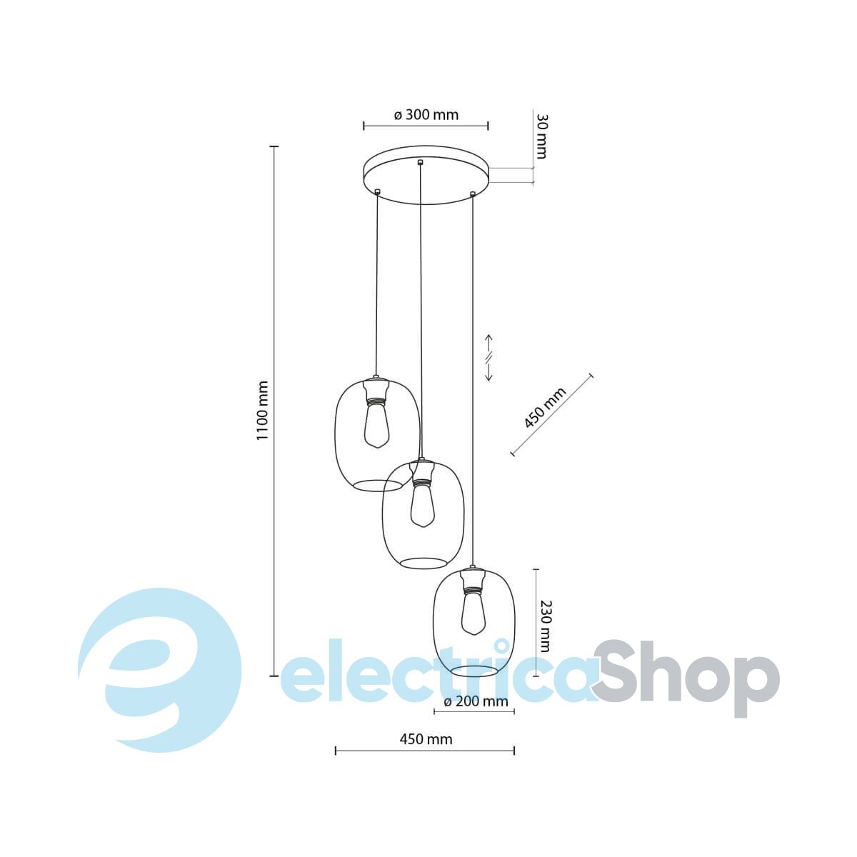 Підвісний світильник TK-Lighting ELIO 5973 матиме гарний вигляд у сучасних інтер'єрах, підійде для стилістики модерн та лофт. Арматура виготовлена з металу, плафони скляні. Добре поєднується з декоративними лампами Едісона.
