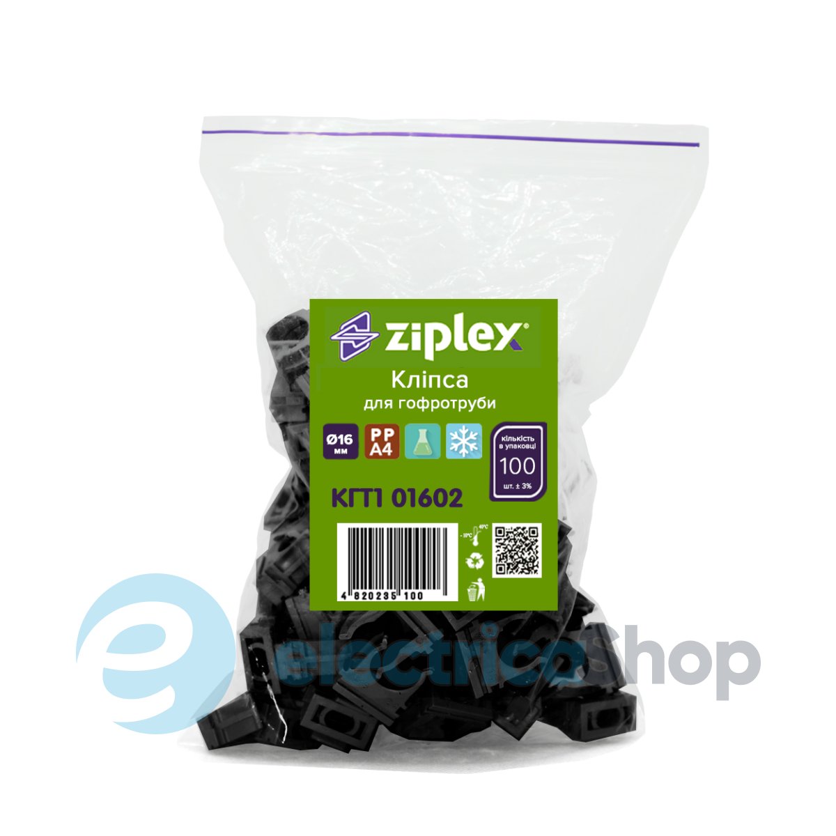 Кліпса для гофротруби Ø 16 чорна Ziplex™ — це кріплення для фіксації труб та кабелю. Продукується з поліпропілену. Має високі характеристики міцності, зносостійкий. Являє собою затискувач з монтажним отвором у основі. Встановлення відбувається у кілька етапів. Спочатку саме кріплення фіксується на поверхні за допомогою дюбеля або саморіза. Після цього труба або кабель з максимальним діаметром 16 мм защіплюється всередині затискувача натисканням. Крок кріплень розраховують в залежності від виду монтажної поверхні таким чином, аби запобігти провисанню.