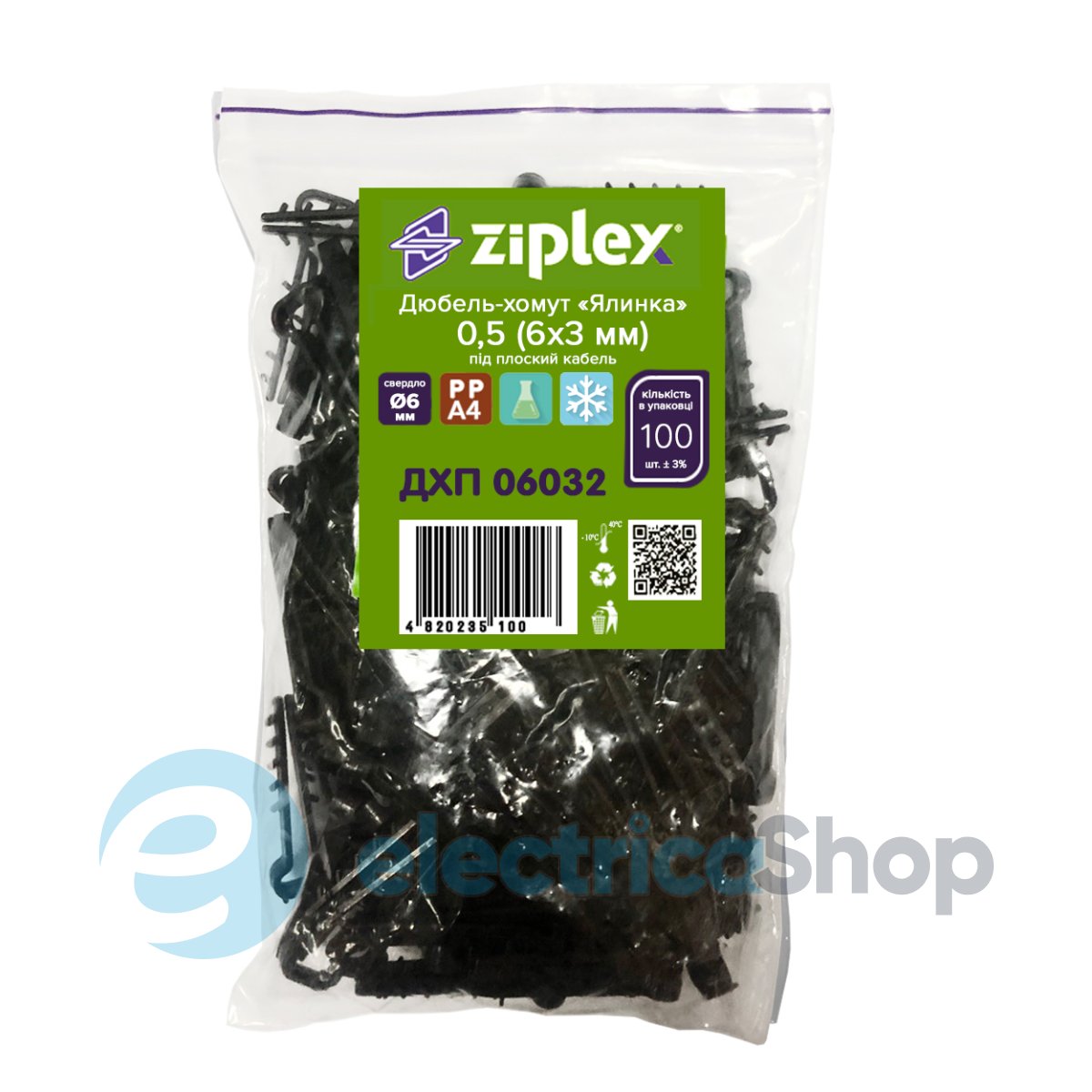 Дюбель-хомут «Ялинка» плоский 6x3 чорний Ziplex™ – це різновид специфічного пластикового кабельного кріплення для плоского кабелю або дроту.