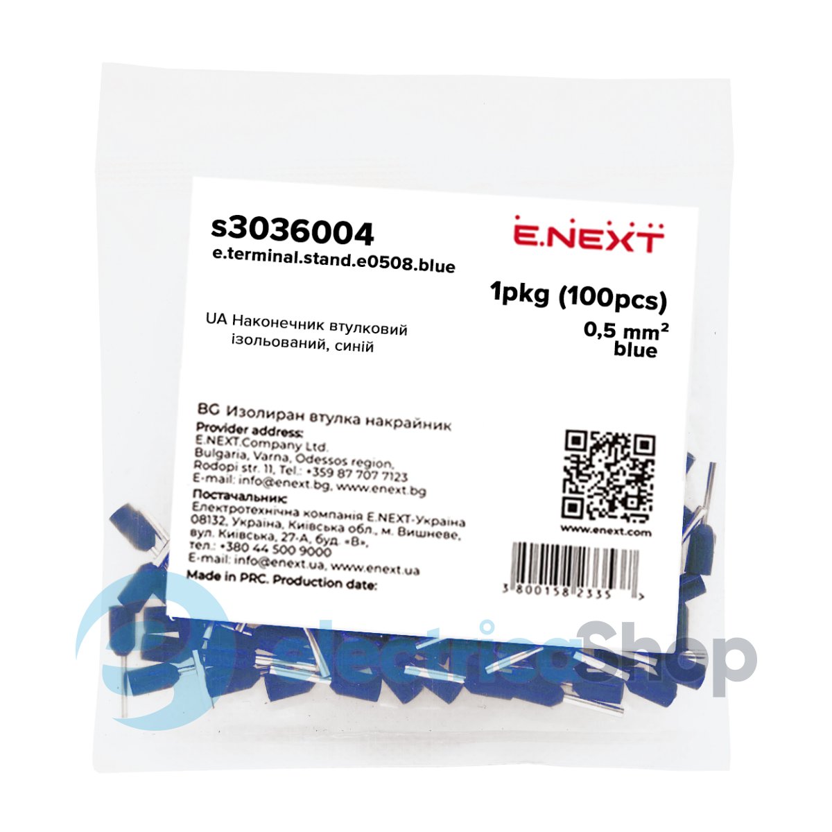 Наконечник e.terminal.stand.e0508.blue розрахований на мережі змінного та постійного струму напругою до 400 В