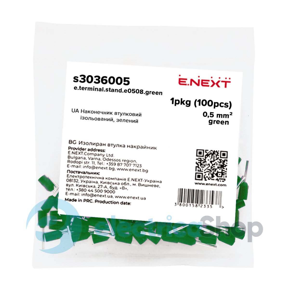 Наконечник e.terminal.stand.e0508.green розрахований на мережі змінного та постійного струму напругою до 400 В