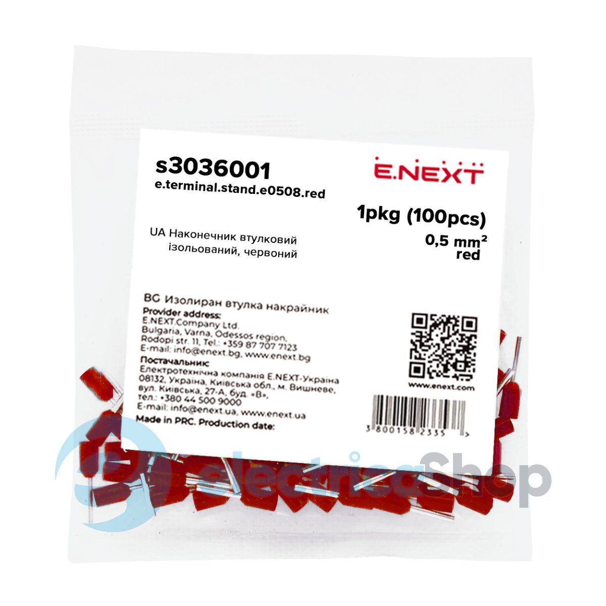 Наконечник e.terminal.stand.e0508.red розрахований на мережі змінного та постійного струму напругою до 400 В