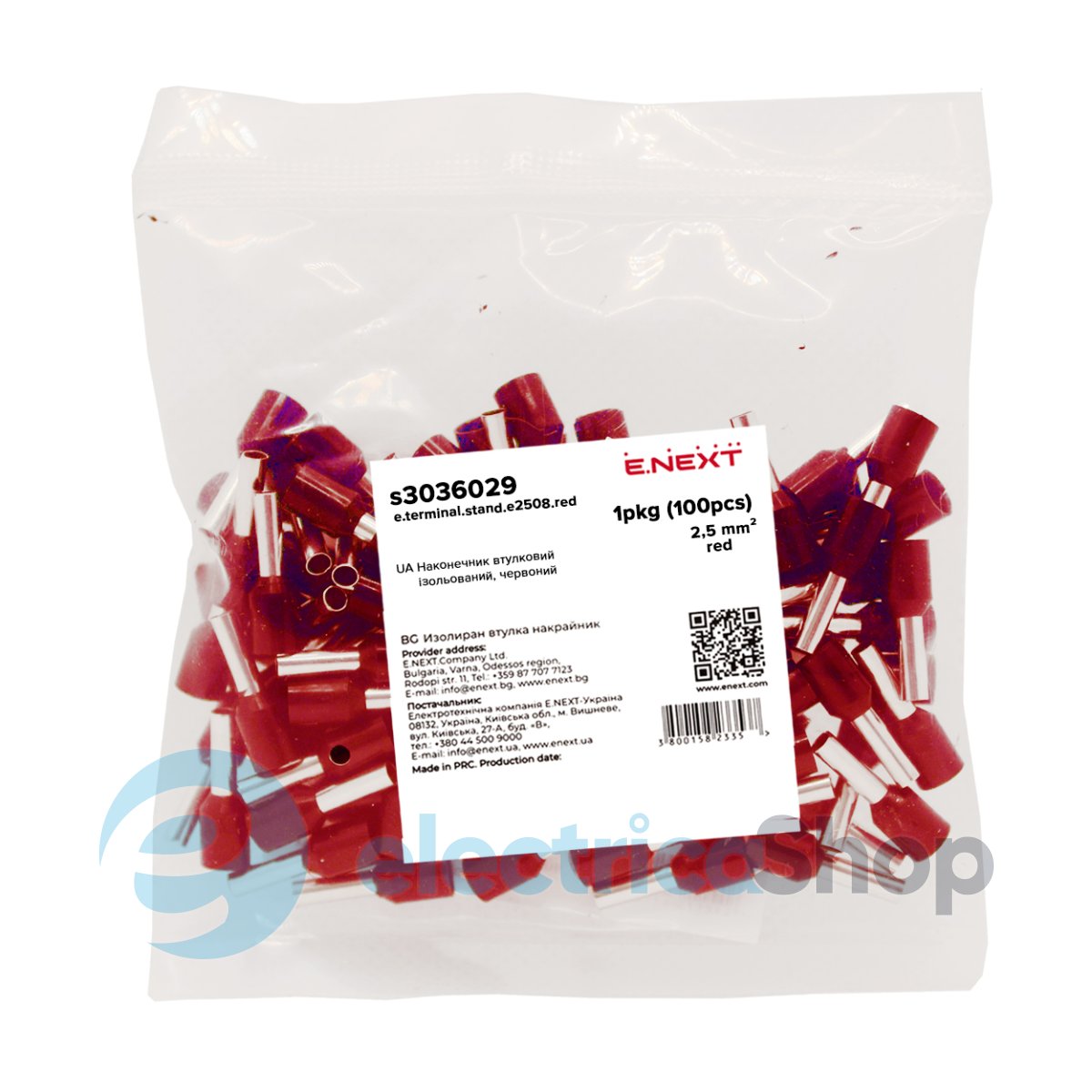Ізольовані наконечник втулковий e.terminal.stand.e2508.red призначен для обтиску мідних багатожильних проводів та кабелів та приєднання їх до електротехнічного обладнання.