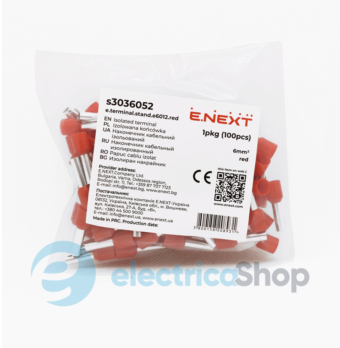 Ізольовані наконечник втулковий e.terminal.stand.e6012.red призначен для обтиску мідних багатожильних проводів та кабелів та приєднання їх до електротехнічного обладнання.