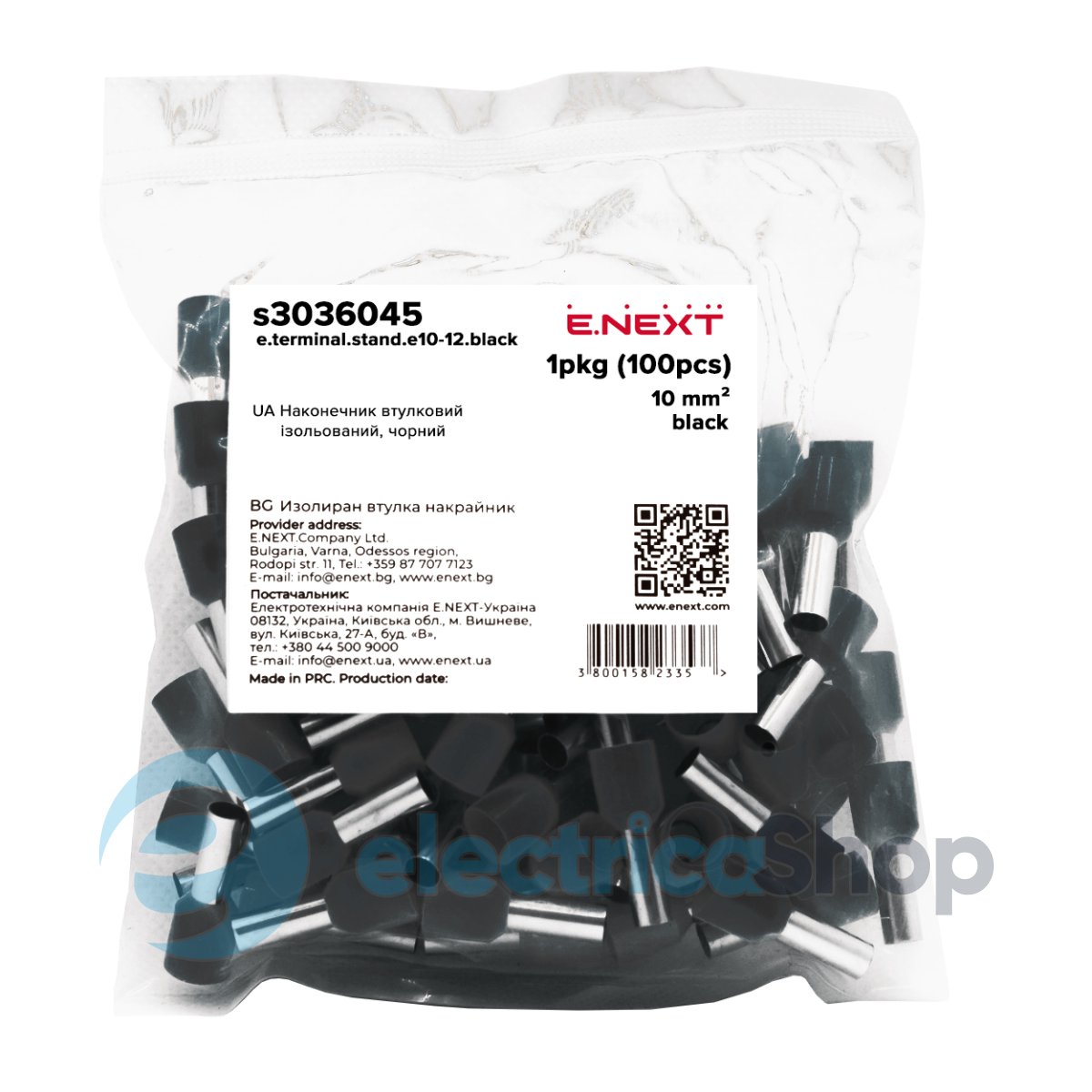 Ізольовані наконечник втулковий e.terminal.stand.e10-18.black призначен для обтиску мідних багатожильних проводів та кабелів та приєднання їх до електротехнічного обладнання.