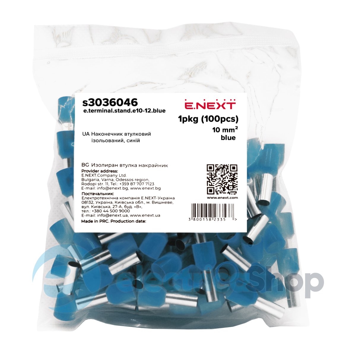 Наконечник e.terminal.stand.e10-18.blue розрахований на мережі змінного та постійного струму напругою до 400 В