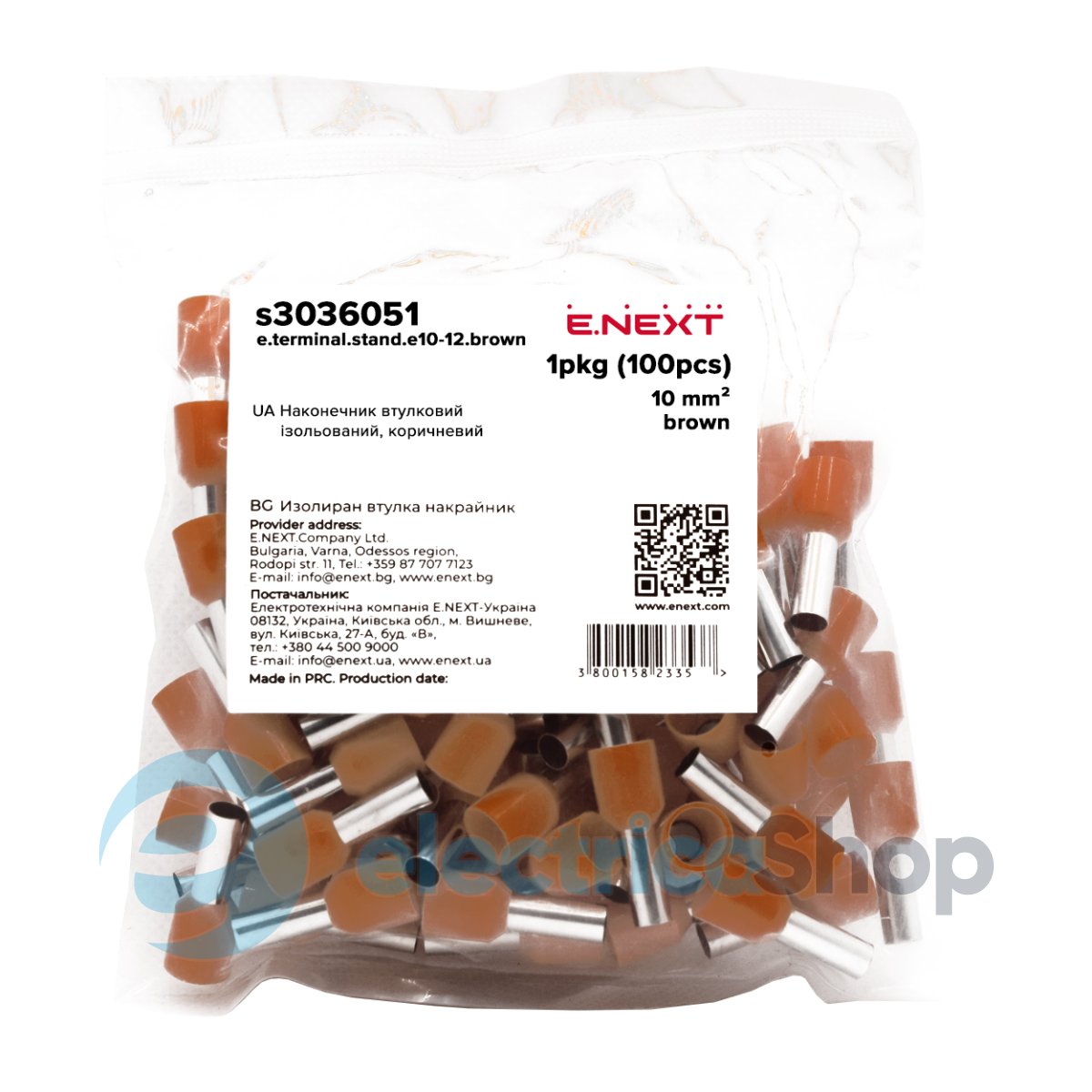 Наконечник e.terminal.stand.e10-18.brown розрахований на мережі змінного та постійного струму напругою до 400 В