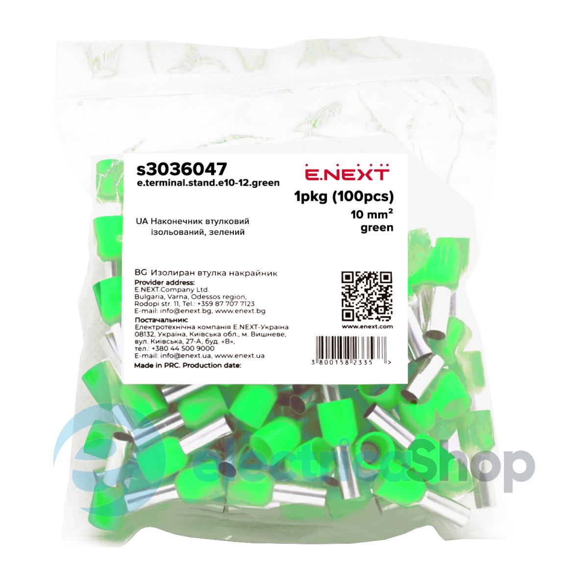 Наконечник e.terminal.stand.e10-18.green розрахований на мережі змінного та постійного струму напругою до 400 В