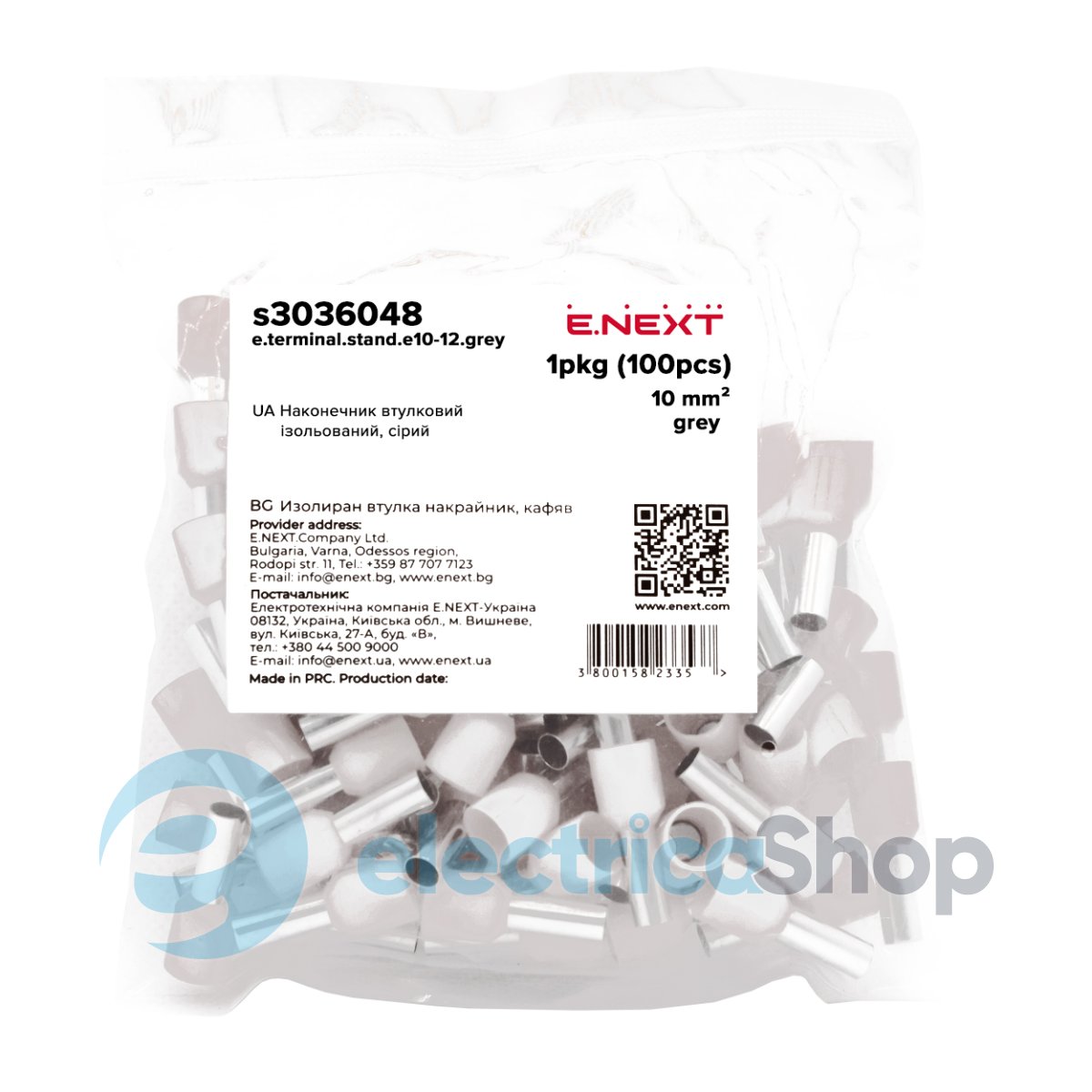 Ізольовані наконечник втулковий e.terminal.stand.e10-18.grey призначен для обтиску мідних багатожильних проводів та кабелів та приєднання їх до електротехнічного обладнання.