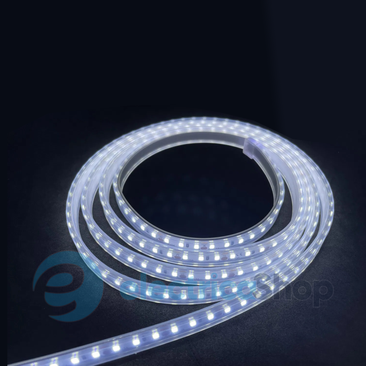 Стрічка світлодіодна виробництва Rishang має холодний білий колір світіння та захищена якісним захисним силіконом, який не втрачає прозорості і не жовтіє з часом.