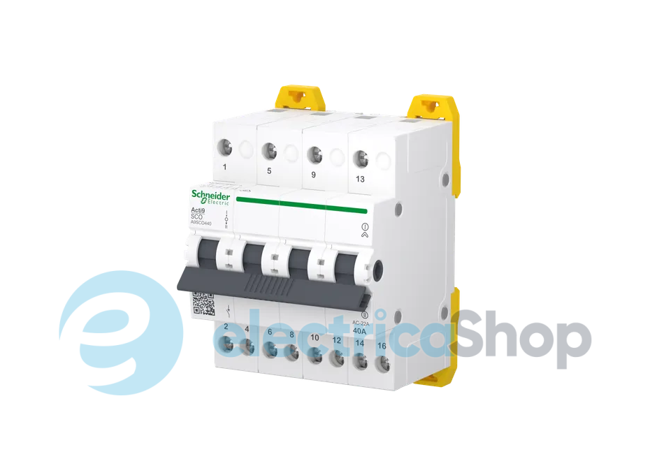 - Перемикач iSSW Acti9 A9SCO440 призначений для встановлення у нових будівлях або таких, що потребуються реновації.
