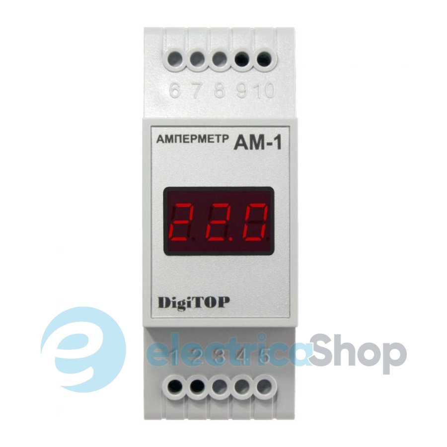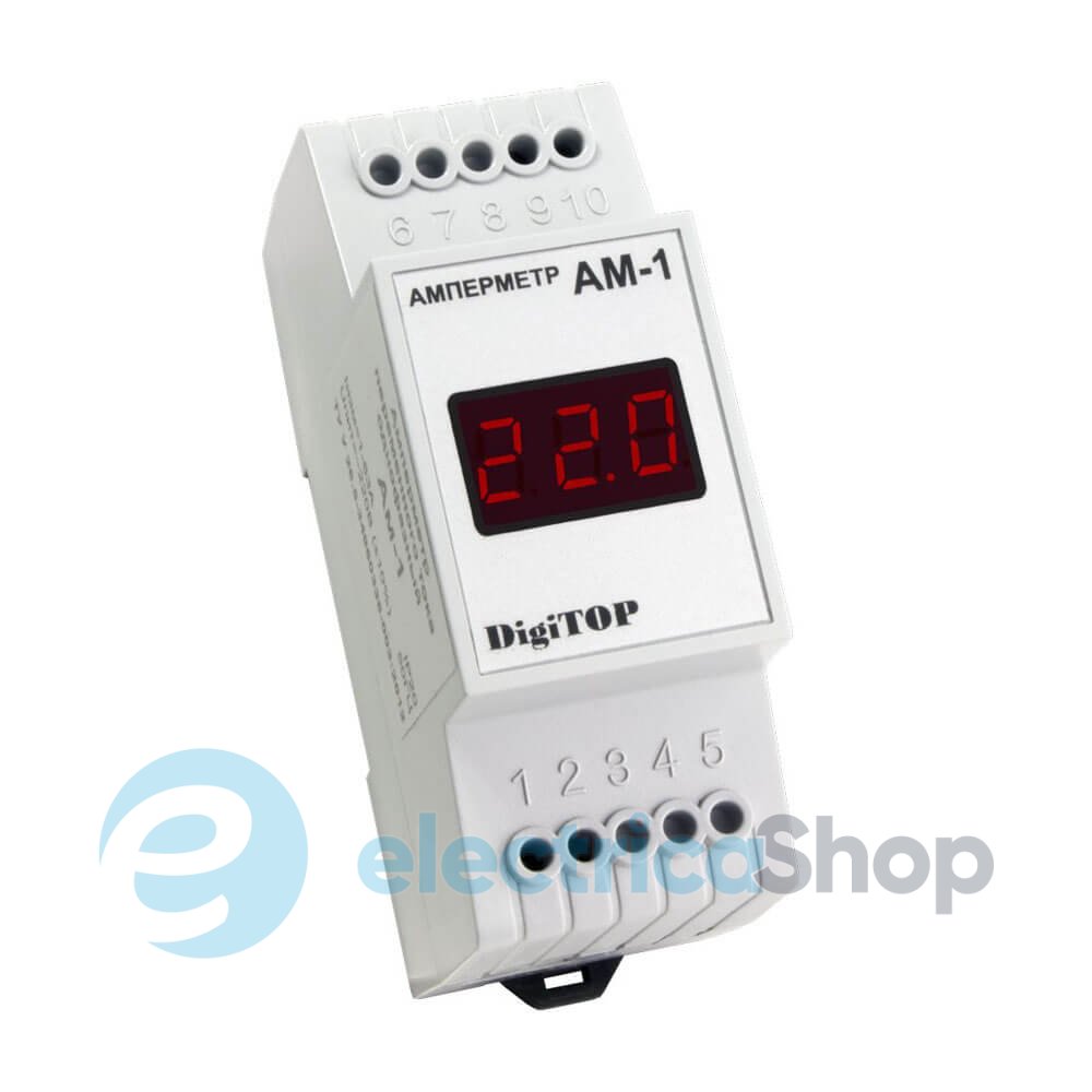 Амперметр АМ-1 DigiTOP призначений для вимірювання змінного струму частотою 50 Гц в однофазній мережі з відображенням потокового значення на цифровому світлодіодному індикаторі.