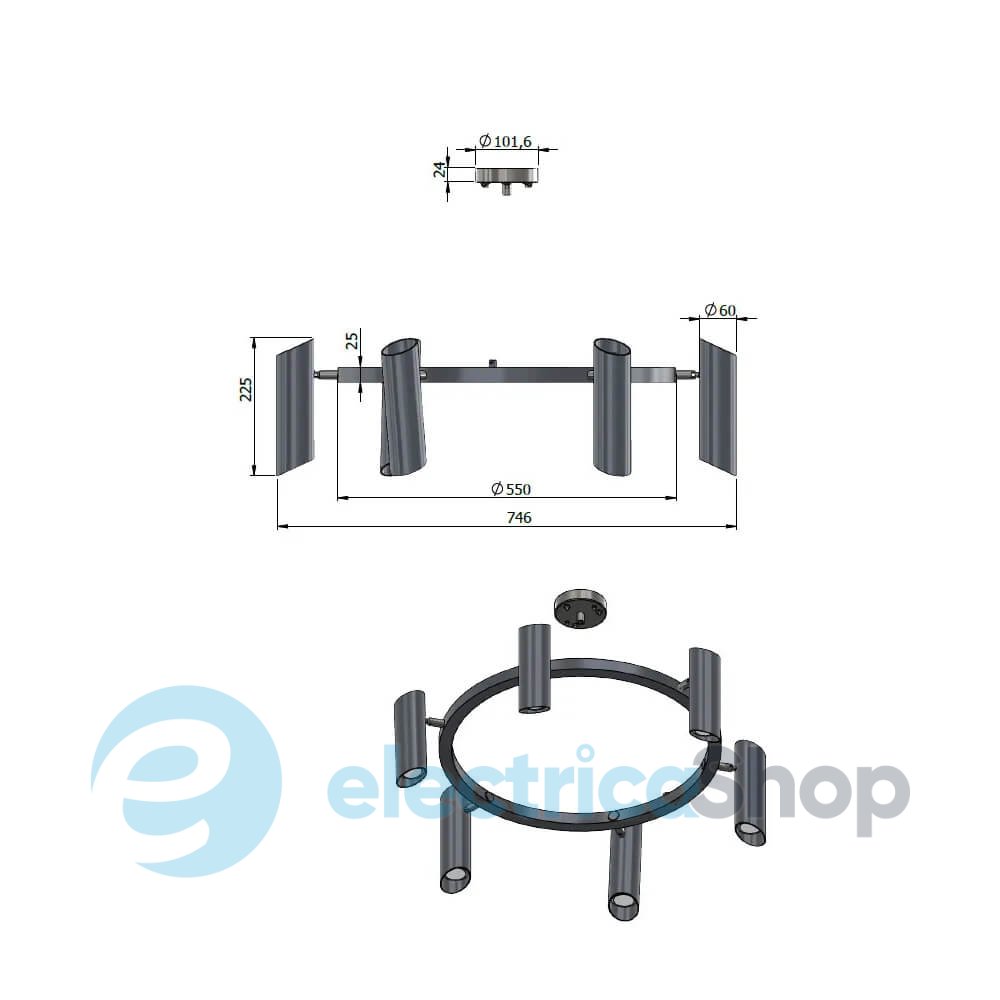 - Матеріал плафонів: Метал