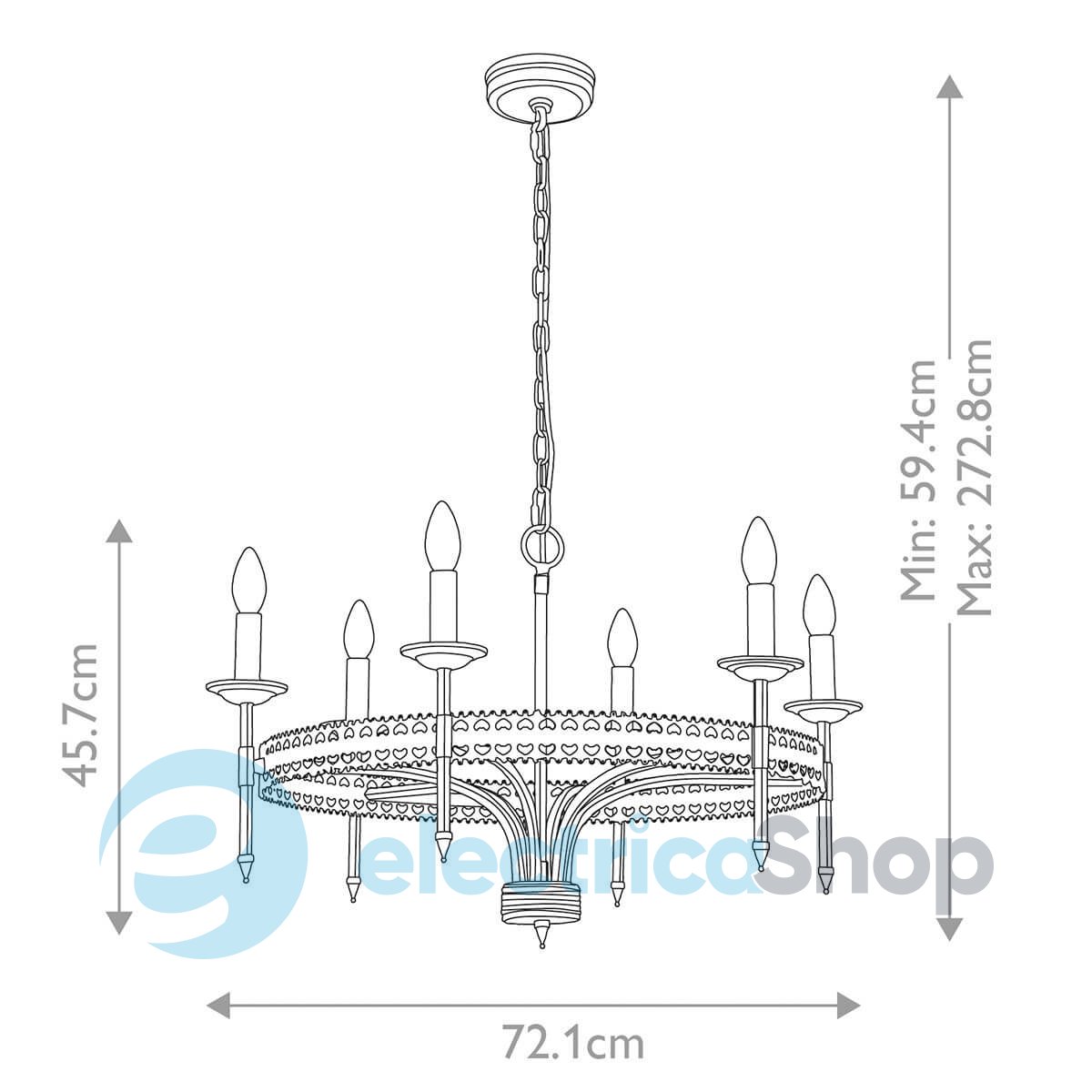 Люстра Elstead CROWN6 матиме гарний вигляд у сучасних інтер'єрах. Металева обводка має вишукану деталізацію, а також ефект крапель води. Висота підвісу регулюється. Люстра сумісна зі смарт-лампами, що димуються.