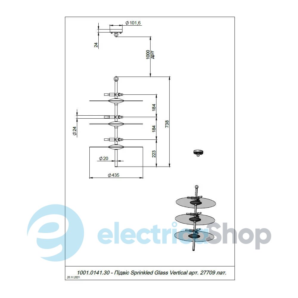 - Призначення: Інтер'єрний світильник/люстра
