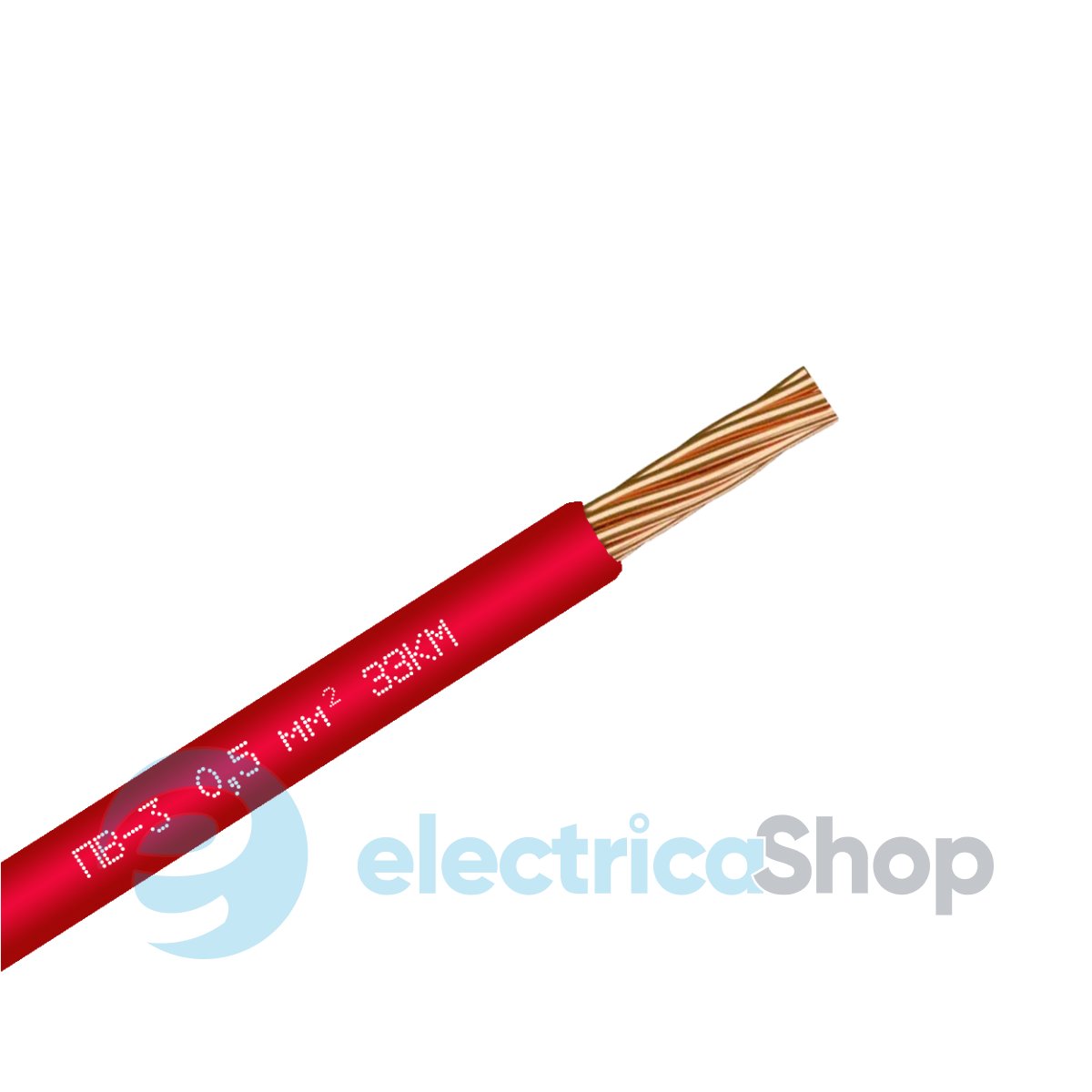 Одножильний монтажний кабель марки ПВ-3 (багатодротова мідна жила) в ізоляції із ПВХ червоного кольору.