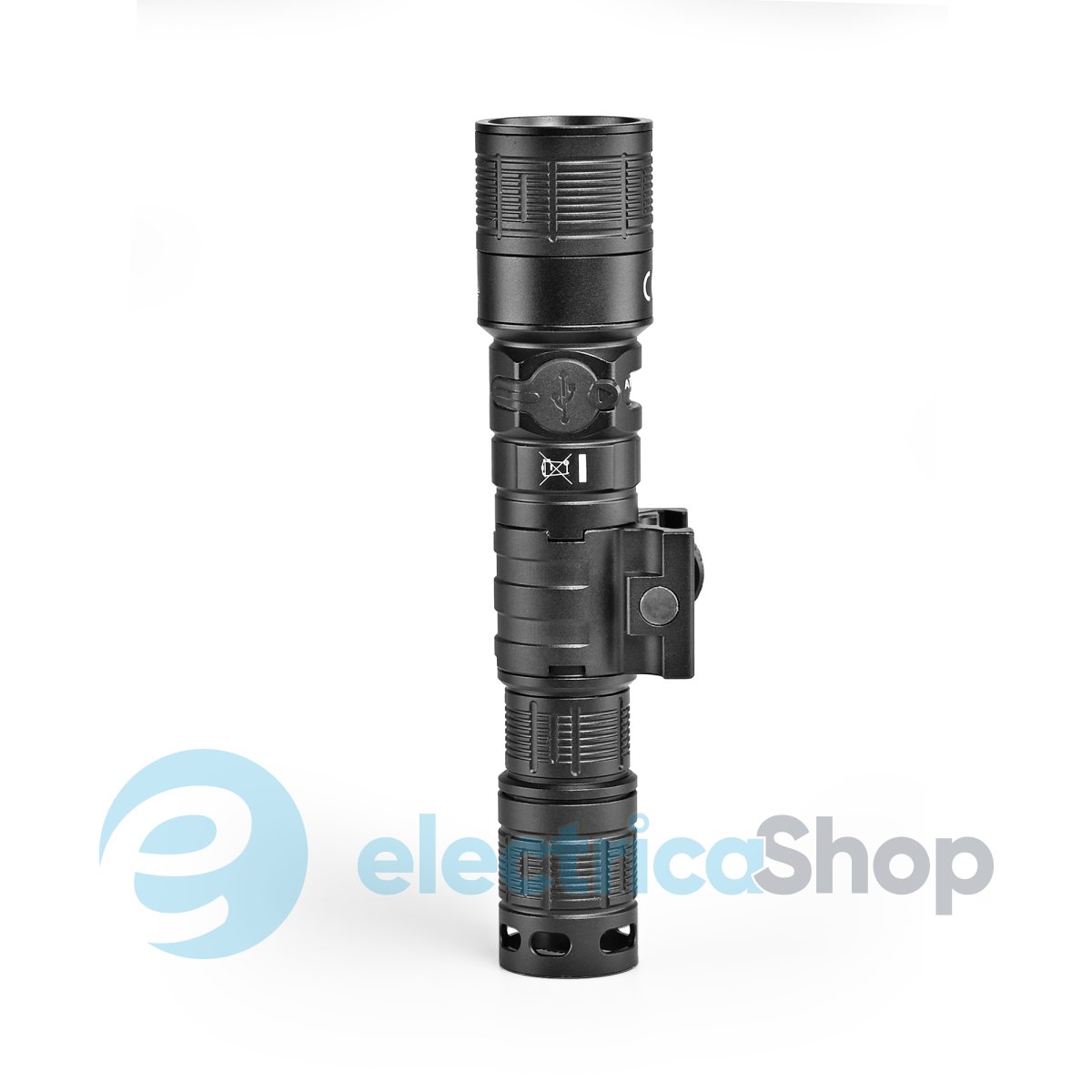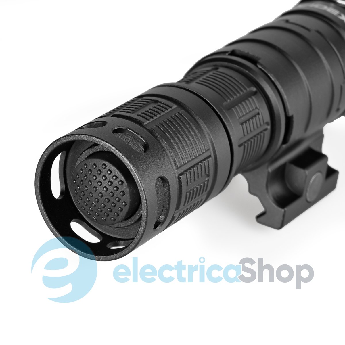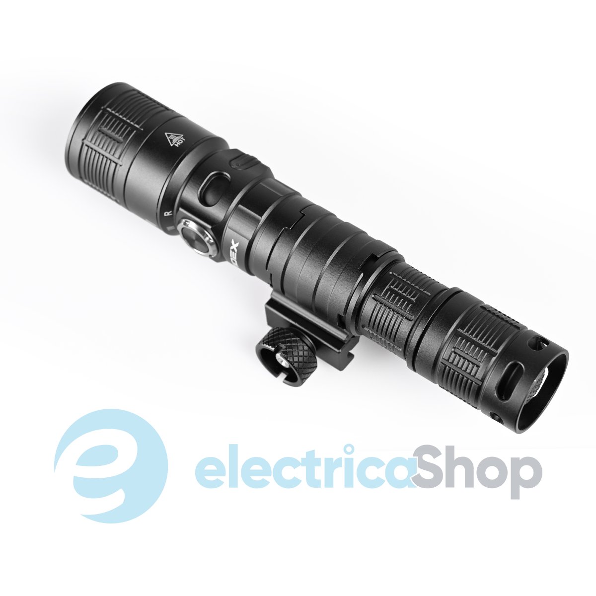 Використовується шнур для ліхтаря, що забезпечує зручне користування і транспортування. В комплекті також йдуть кліпса, запасна накладка для тактичної кнопки і тримач для планки Пікатінні. Тримач для планки Пікатінні стане в нагоді, коли ліхтар потрібно закріпити на зброї. Щоб закріпити ліхтарик на рейці, відкрутіть затискну гайку проти годинникової стрілки. Помістіть ліхтарик на рейку, а потім затягніть затискну гайку за годинниковою стрілкою.
