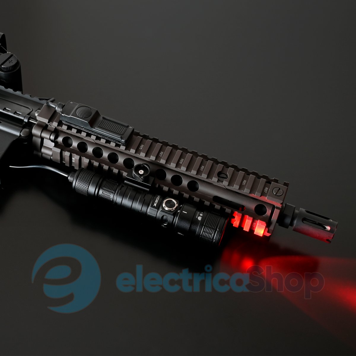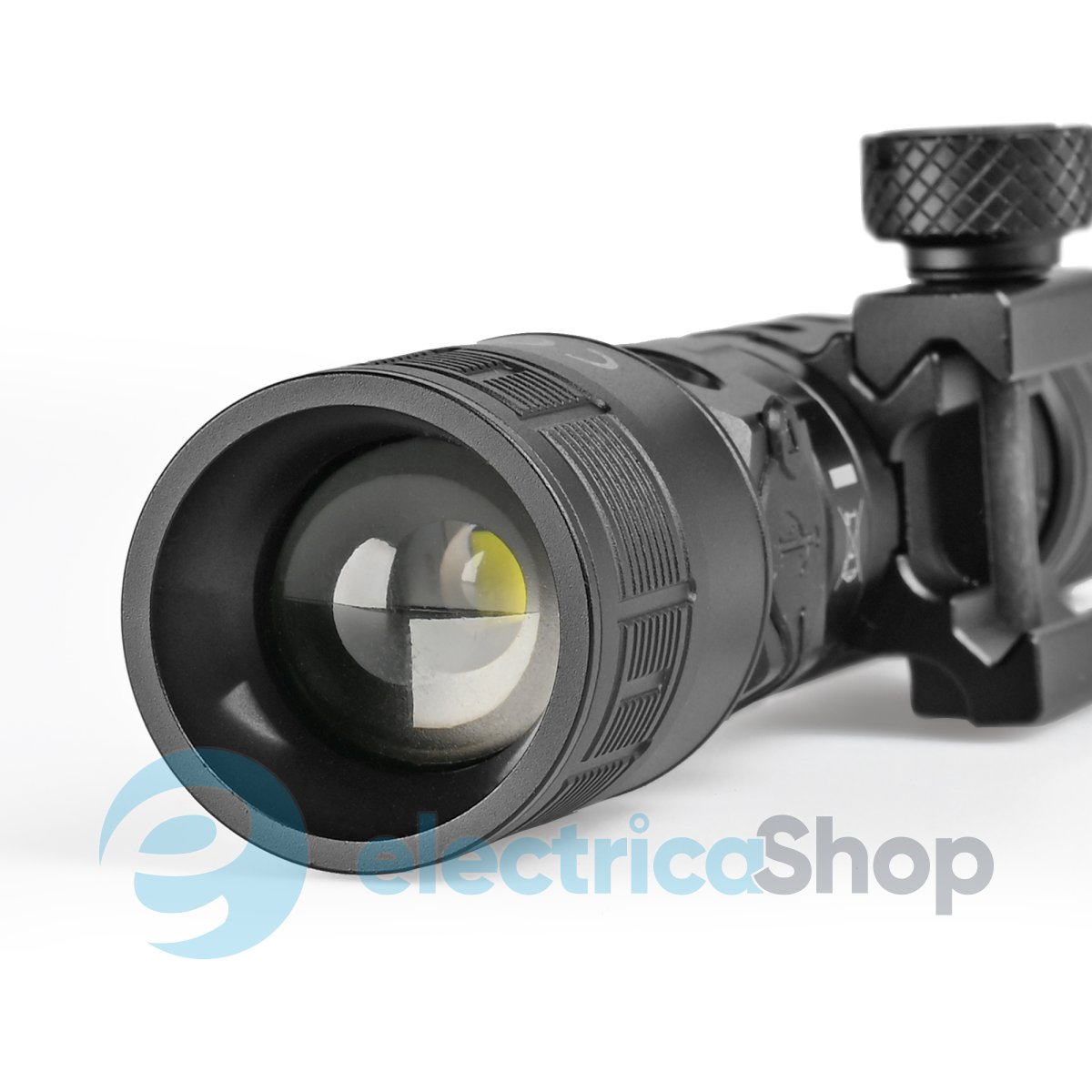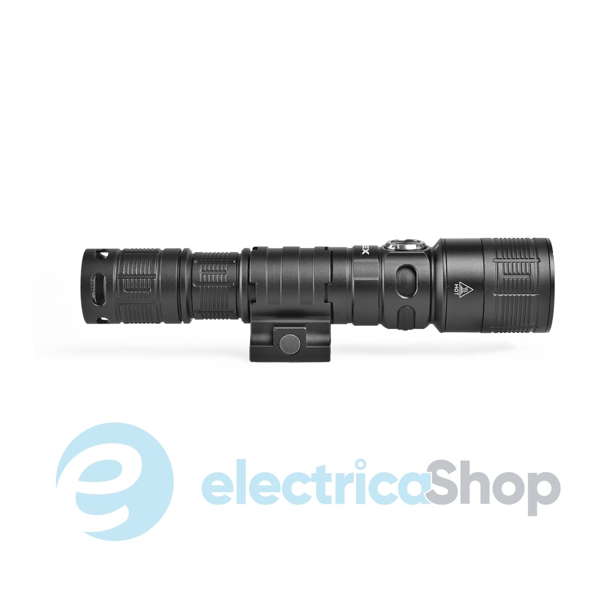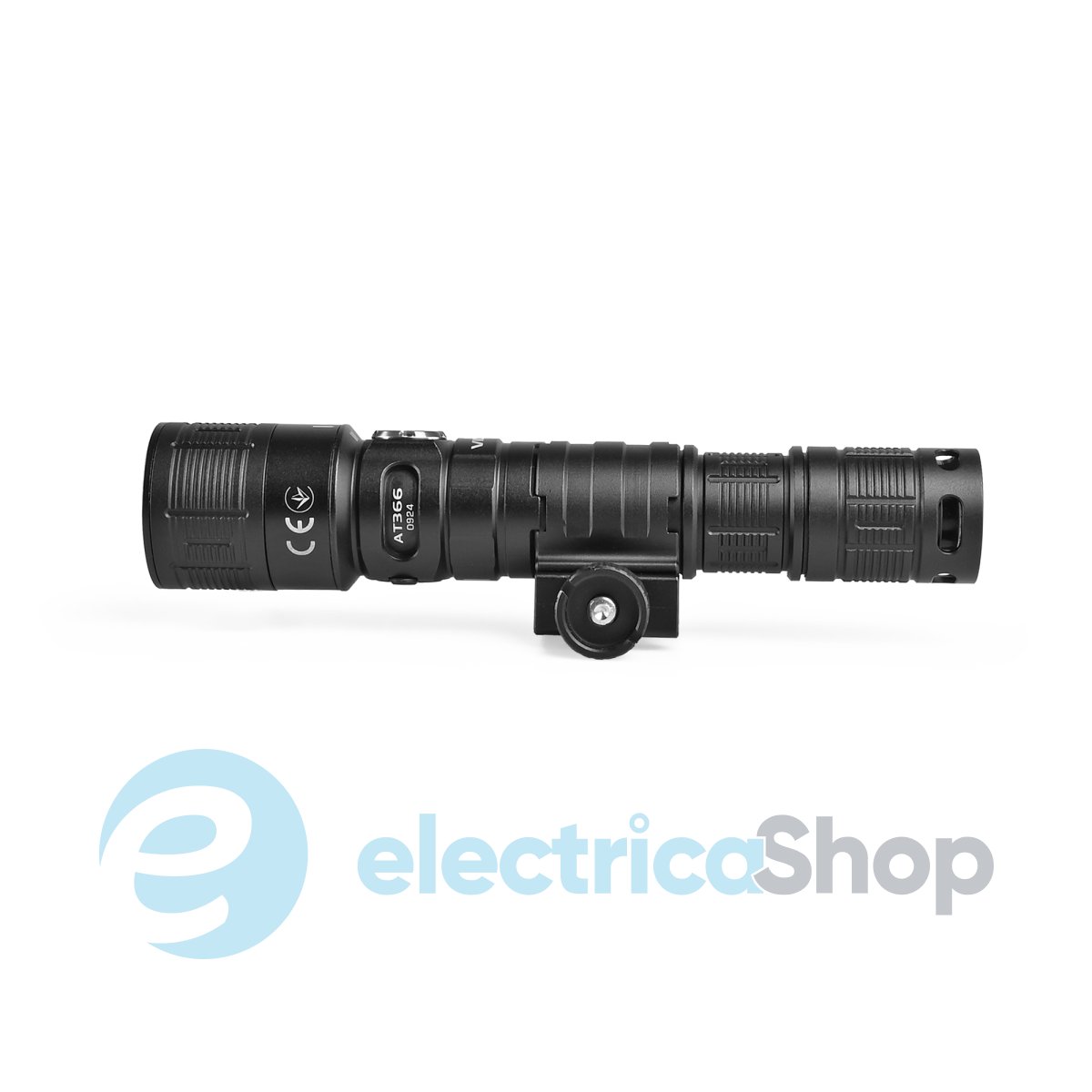 Використовується шнур для ліхтаря, що забезпечує зручне користування і транспортування. В комплекті також йдуть кліпса, запасна накладка для тактичної кнопки і тримач для планки Пікатінні. Тримач для планки Пікатінні стане в нагоді, коли ліхтар потрібно закріпити на зброї. Щоб закріпити ліхтарик на рейці, відкрутіть затискну гайку проти годинникової стрілки. Помістіть ліхтарик на рейку, а потім затягніть затискну гайку за годинниковою стрілкою.