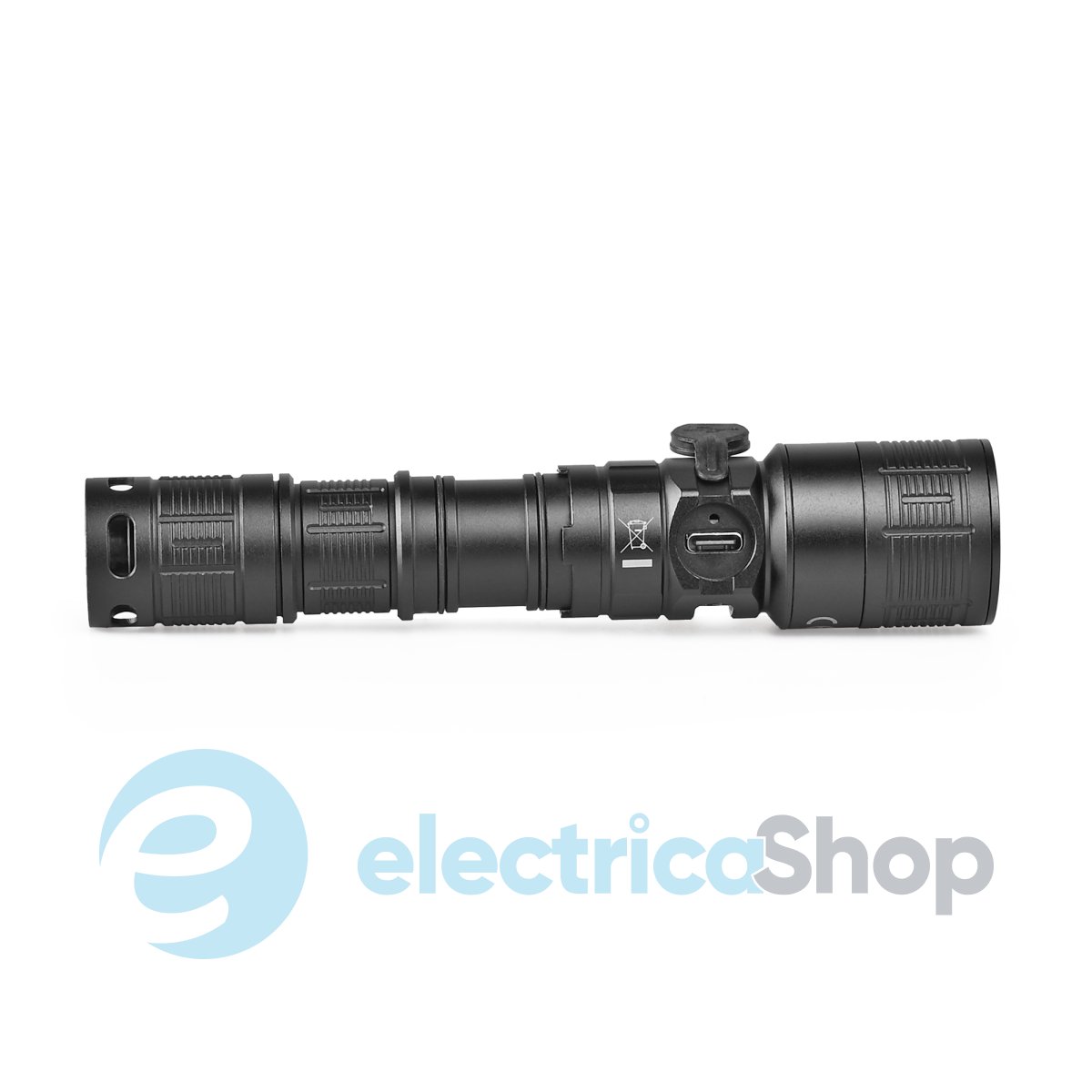 - Червоним кольором мерехтить при заряді (24-1%).Доступне заряджання за допомогою кабелю USB-C. В якості елементів живлення використовуються акумулятор типу 18650.