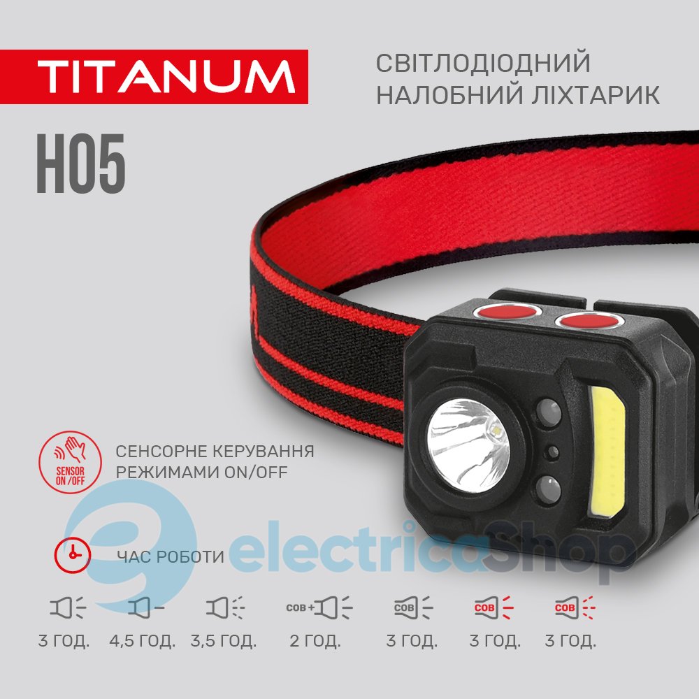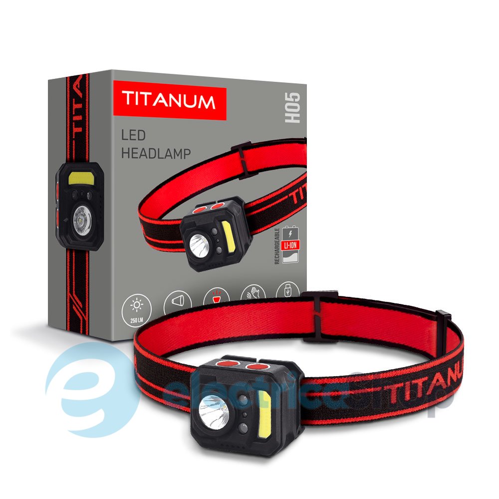 Налобний світлодіодний ліхтарик TITANUM TLF-H05 250Лм 6500K має компактні розміри та зручний і м’який за структурою налобний ремінь, який забезпечує комфорт під час тривалого носіння. В ліхтарик вбудований акумулятор. Має найбільшу популярність у застосуванні серед туристів, велосипедистів, риболовів та мисливців. Особливістю даної моделі є наявність датчика сенсора, що дозволяє керувати ліхтариком за допомогою жестів. Також ліхтарик має механізм нахилу, який дозволяє регулювати кут освітлення.