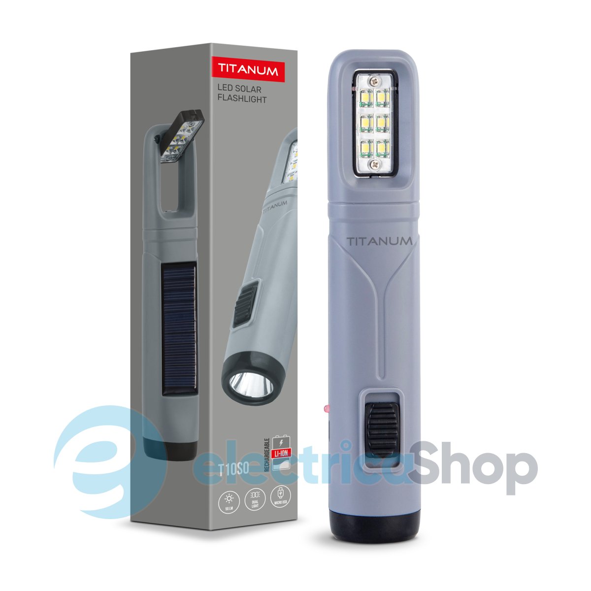 Портативний ліхтарик із сонячною батареєю TITANUM TLF-T10SO з акумулятором призначений для використання у темну пору доби або в приміщеннях без освітлення. Має зручну ергономічну форму, вбудовану сонячну панель та працює від акумулятора. Особливістю даної моделі є два джерела світла: переднє (основне) та бокове, яке використовують переважно для ближнього освітлення. Підходить для застосування у побуті, риболовлі чи туризмі.