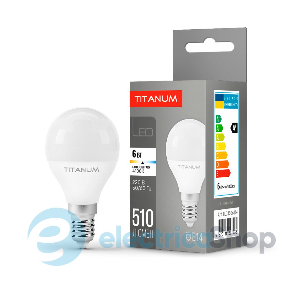 LED лампа TITANUM G45 6W E14 4100K - високотехнологічне джерело світла. Забезпечує рівний світловий потік і максимальну потужність з першої секунди роботи. Призначена для загального освітлення приміщень, торговельних залів і вітрин, промислових підприємств. Ідеальна для декоративного, місцевого і направленного освітлення. Використовується у всіх типах побутових світильників. Має тривалий термін експлуатації і високу стійкість до навантажень під час вмикання і вимикання.