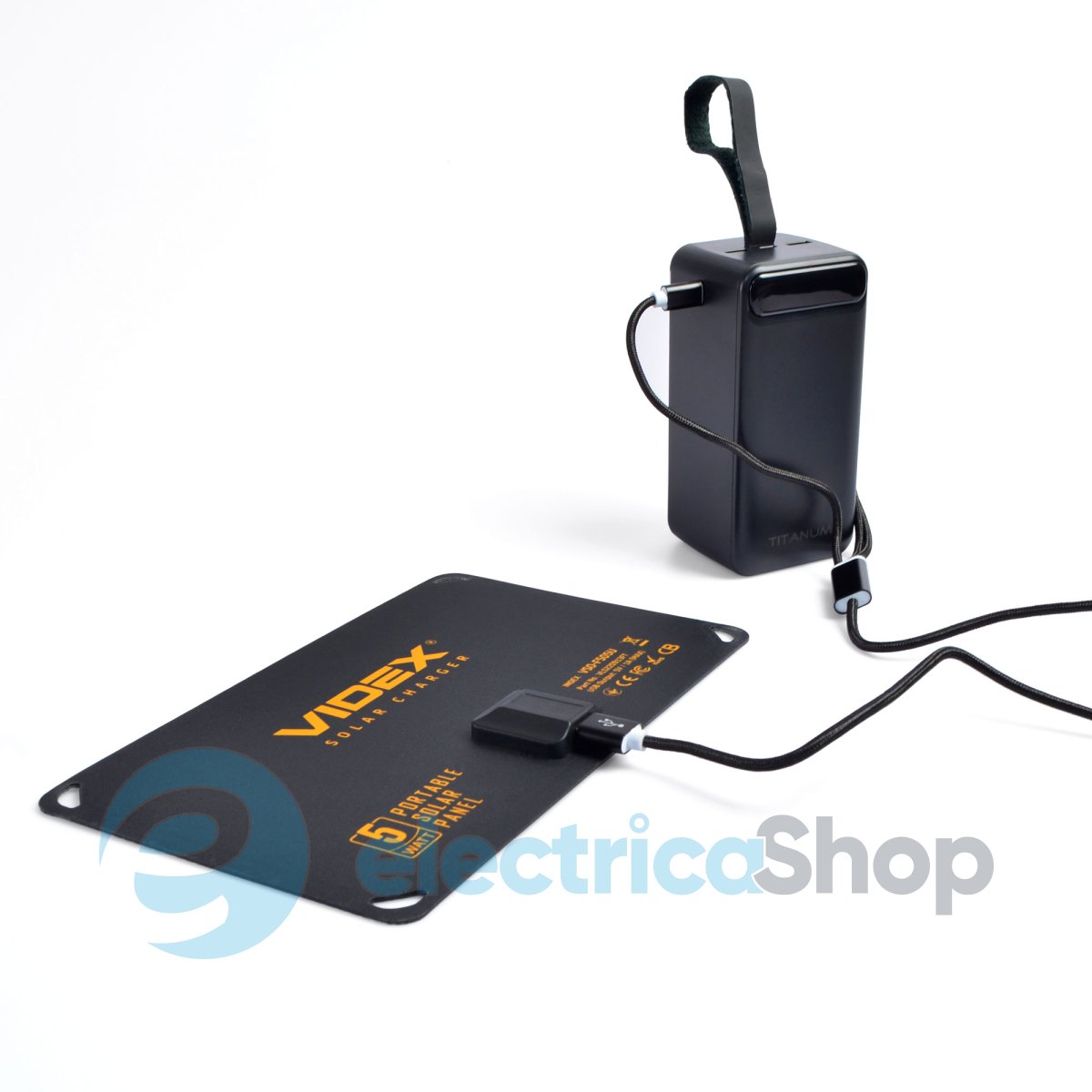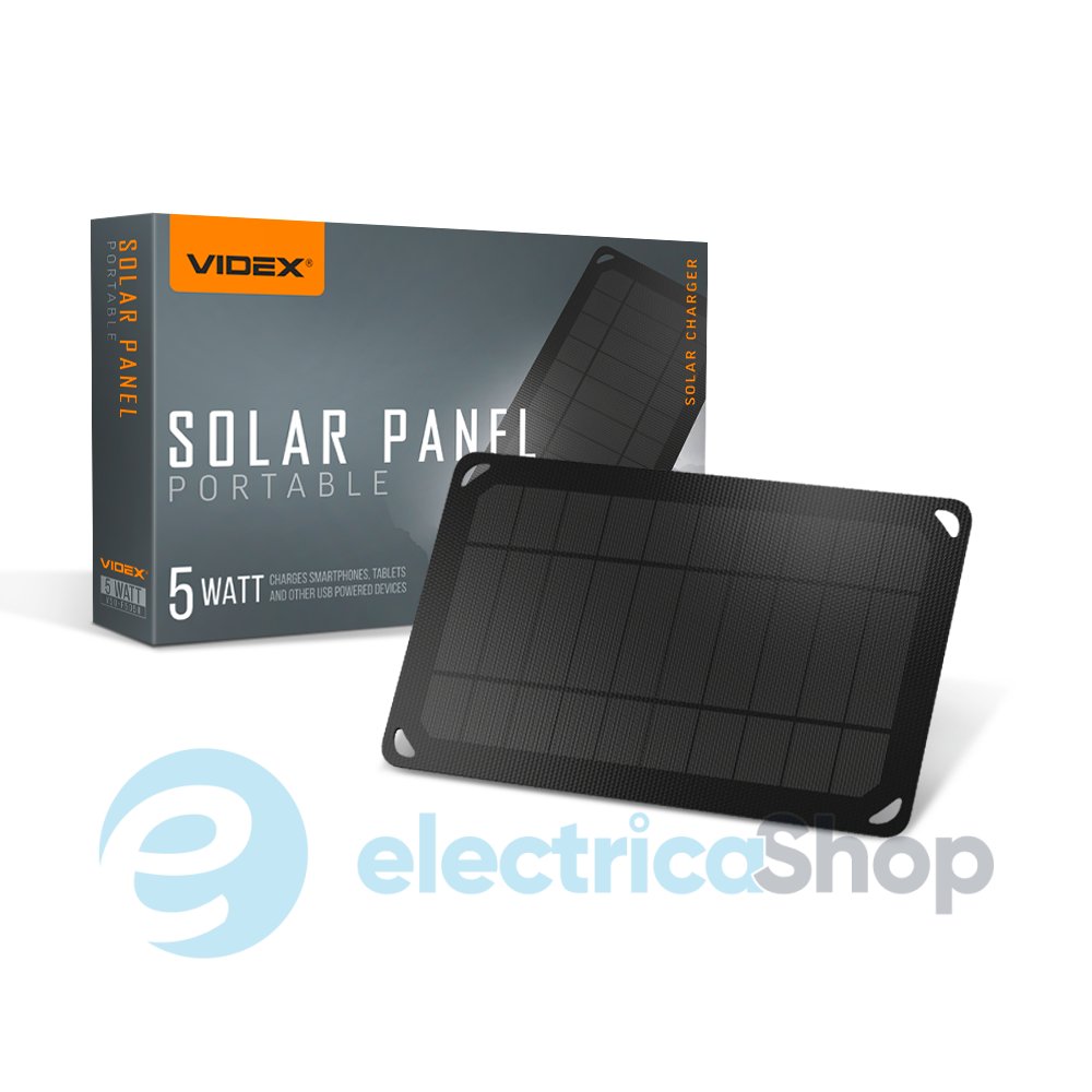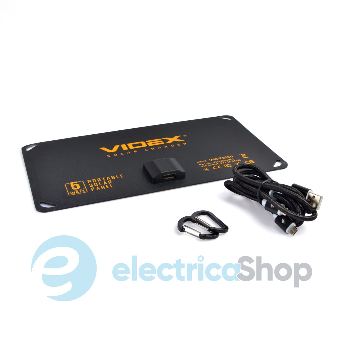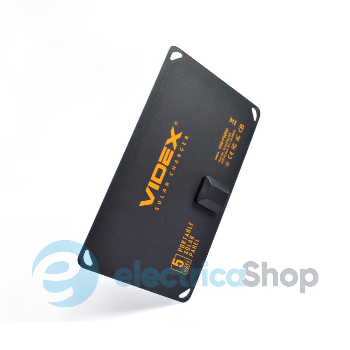 Легкий портативний сонячний зарядний пристрій VIDEX F505U 5W, який може перетворювати сонячне світло на електрику для негайного виробництва відновлюваної енергії. Він може заряджати різноманітні пристрої, такі як мобільний телефон, планшет, павербанк тощо.