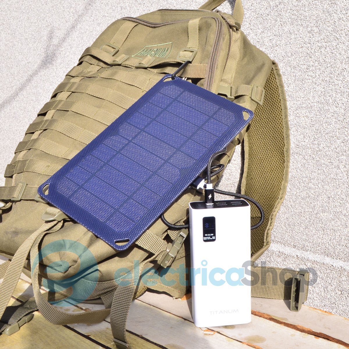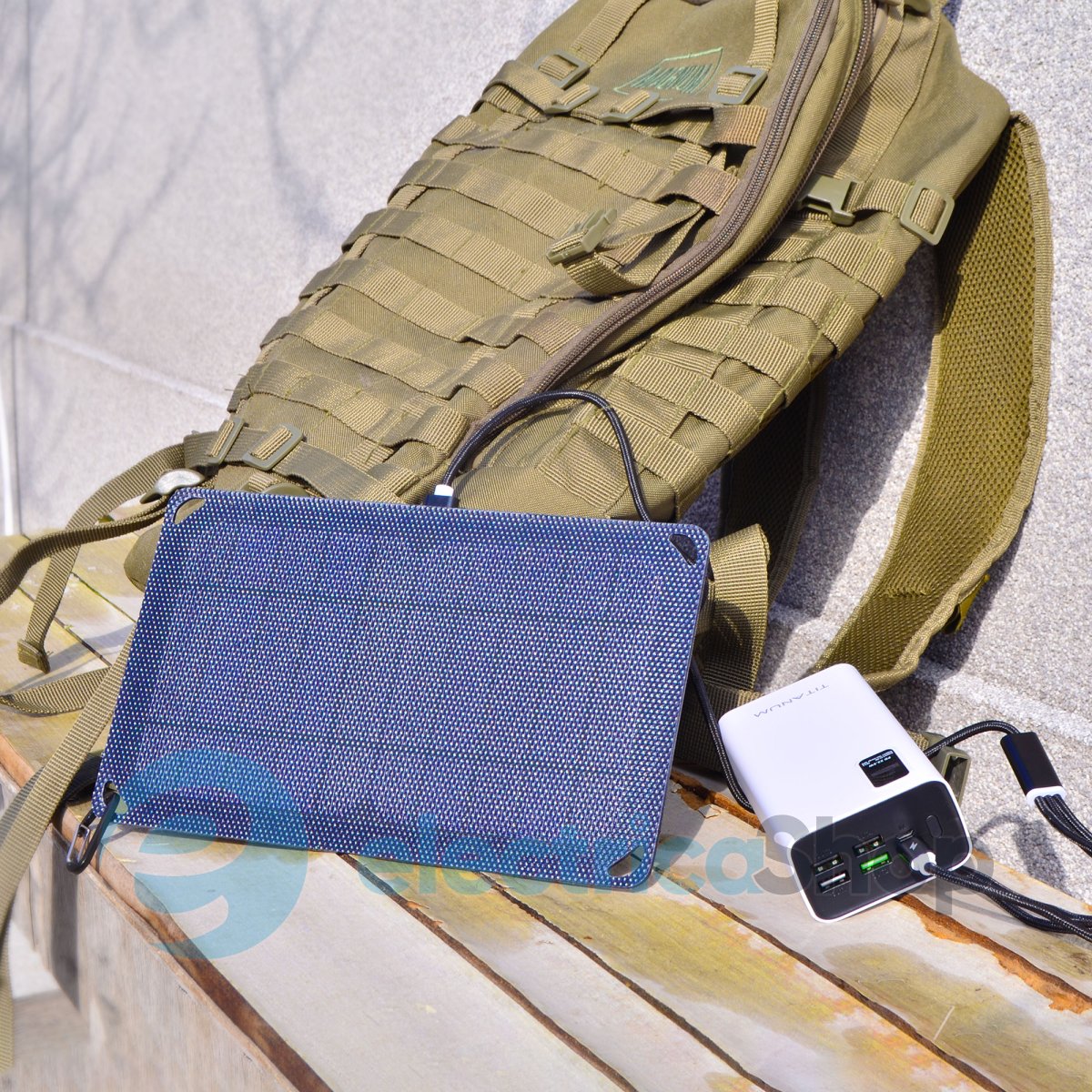 Рекомендується розміщувати панель перпендикулярно сонячним променям, щоб отримати максимальну продуктивність.В комплект входить USB кабель з різними виходами (Type-C, Micro USB, Lightning) для заряджання ваших гаджетів, а також два карабіни для зручної фіксації панелі.
