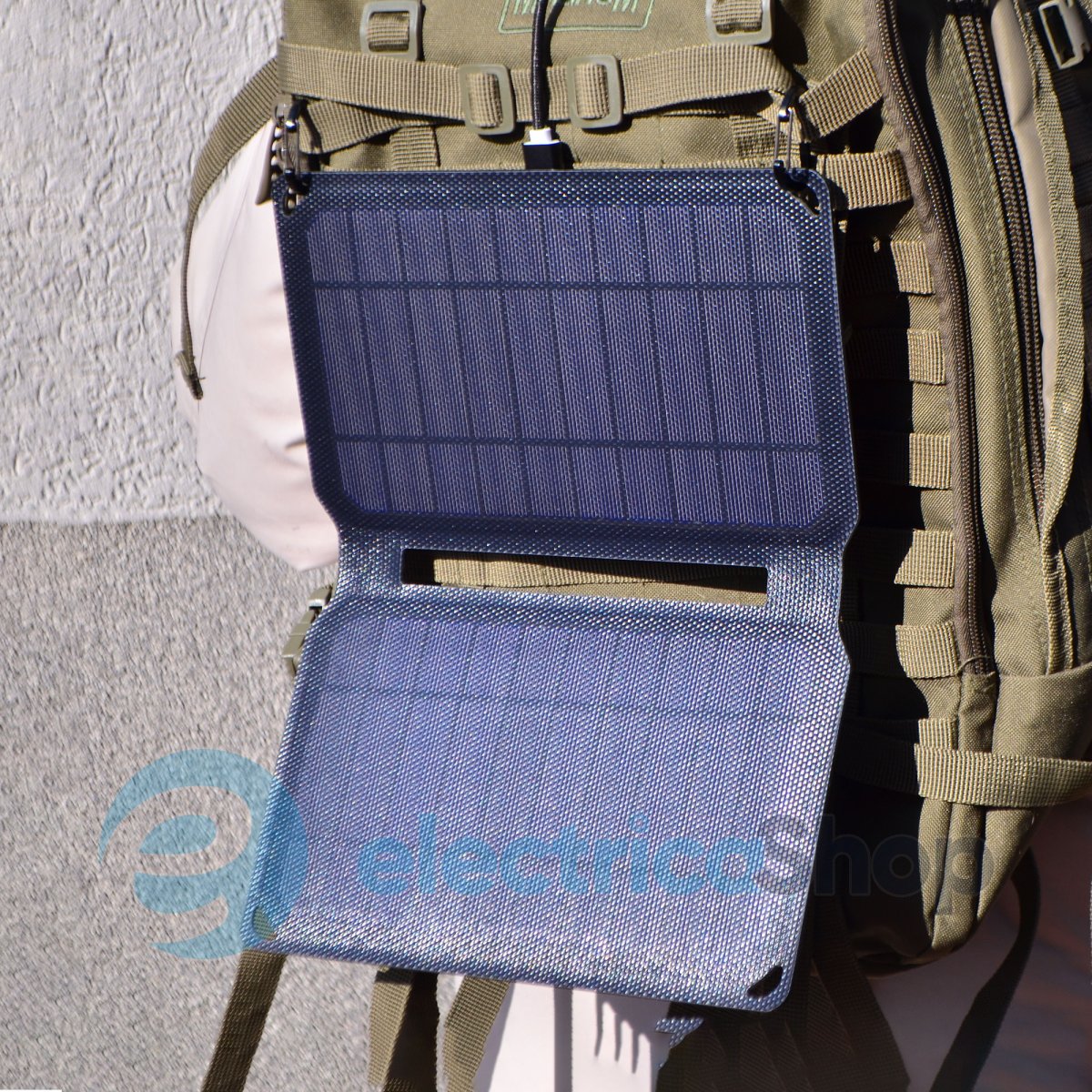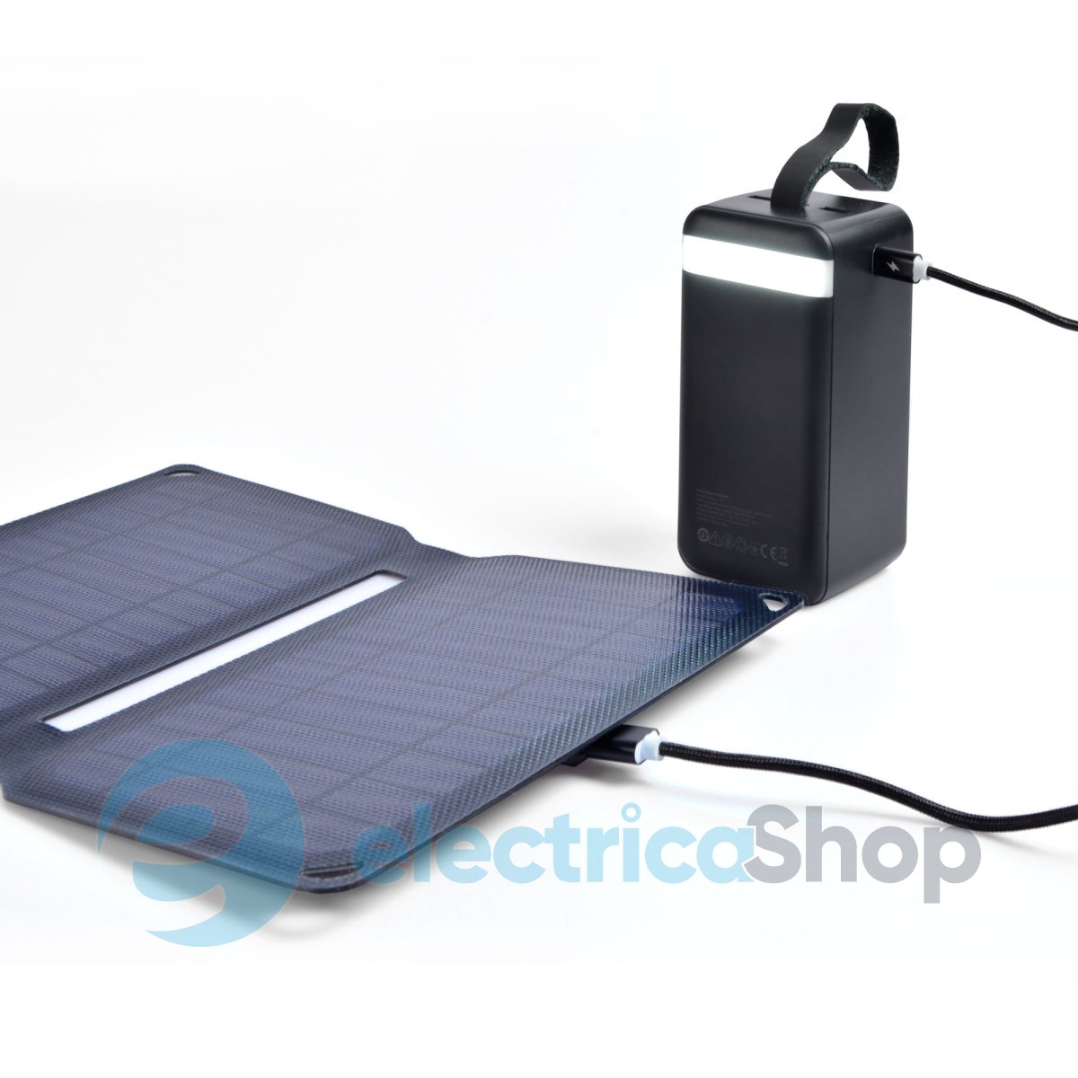 Рекомендується розміщувати панель перпендикулярно сонячним променям, щоб отримати максимальну продуктивність.В комплект входить USB кабель довжиною 1м з різними виходами (Type-C, Micro USB, Lightning) для заряджання ваших гаджетів, а також два карабіни для зручної фіксації панелі.