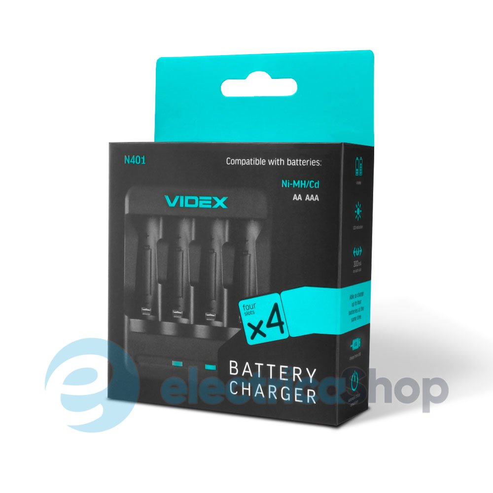 Зарядний пристрій Videx VCH-N401 - пристосований для багаторазового заряду акумуляторних елементів живлення.