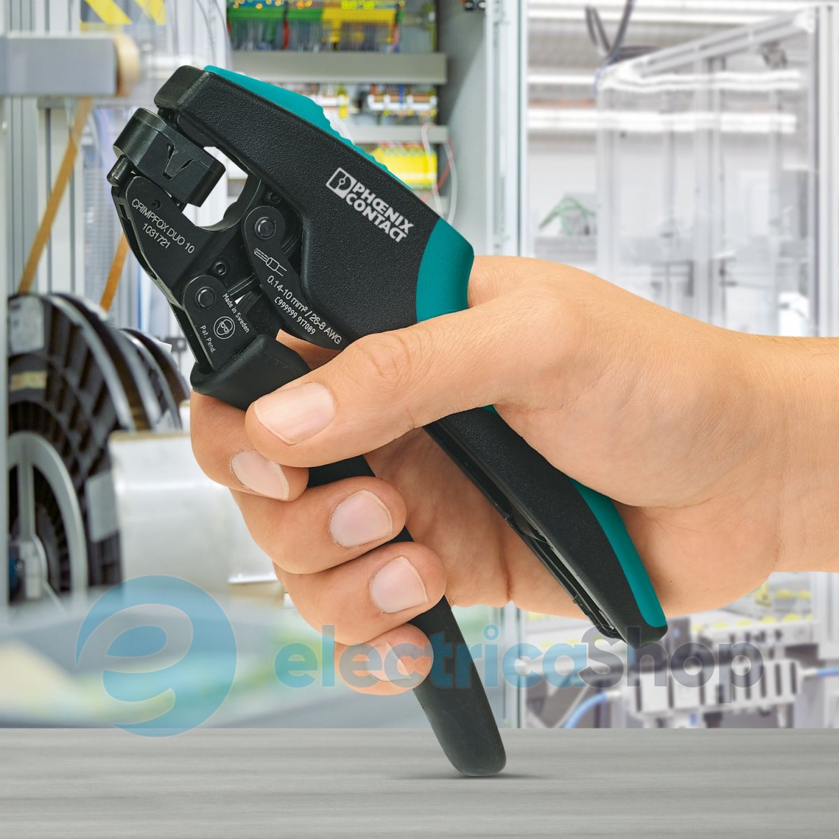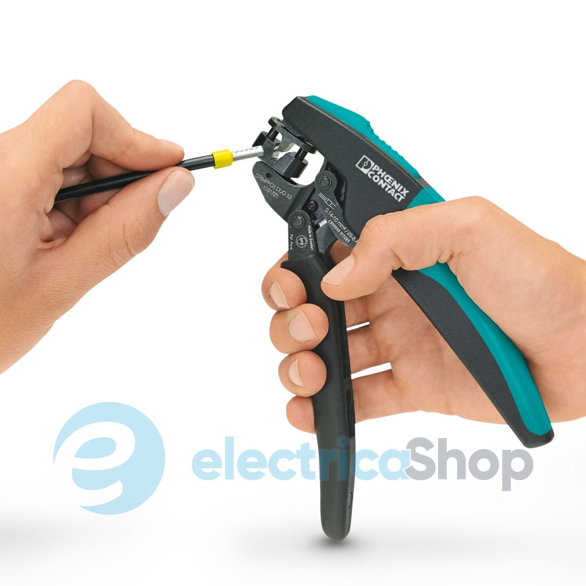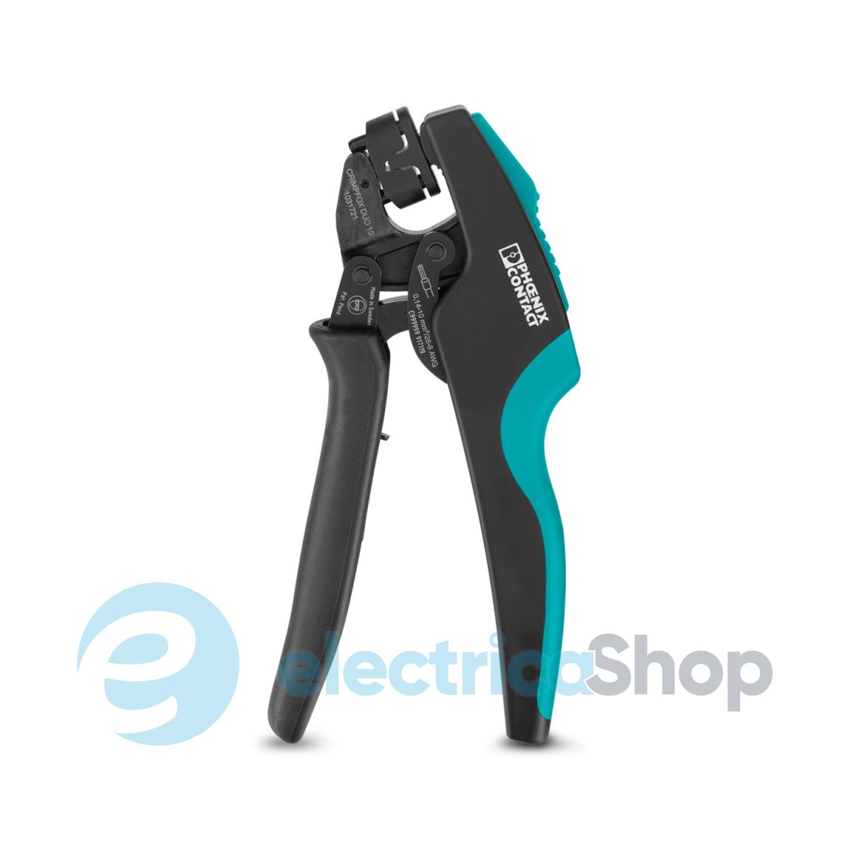 • Кліщі обжимні, тип контактного з’єднання: ізольовані та неізольовані наконечники, стандарти/технічні характеристики: DIN 46228-1, DIN 46228-4, UL 486F, форма A, E, F, мін. поперечний переріз: 0,14 мм², макс. поперечний переріз: 10 мм², для наконечників TWIN до 2 x 4 мм², автоматичне регулювання поперечного перерізу, обертова матриця, бічна та фронтальна вставка, компресія: трапецієподібний обжим. Колір: сірий/зелений.