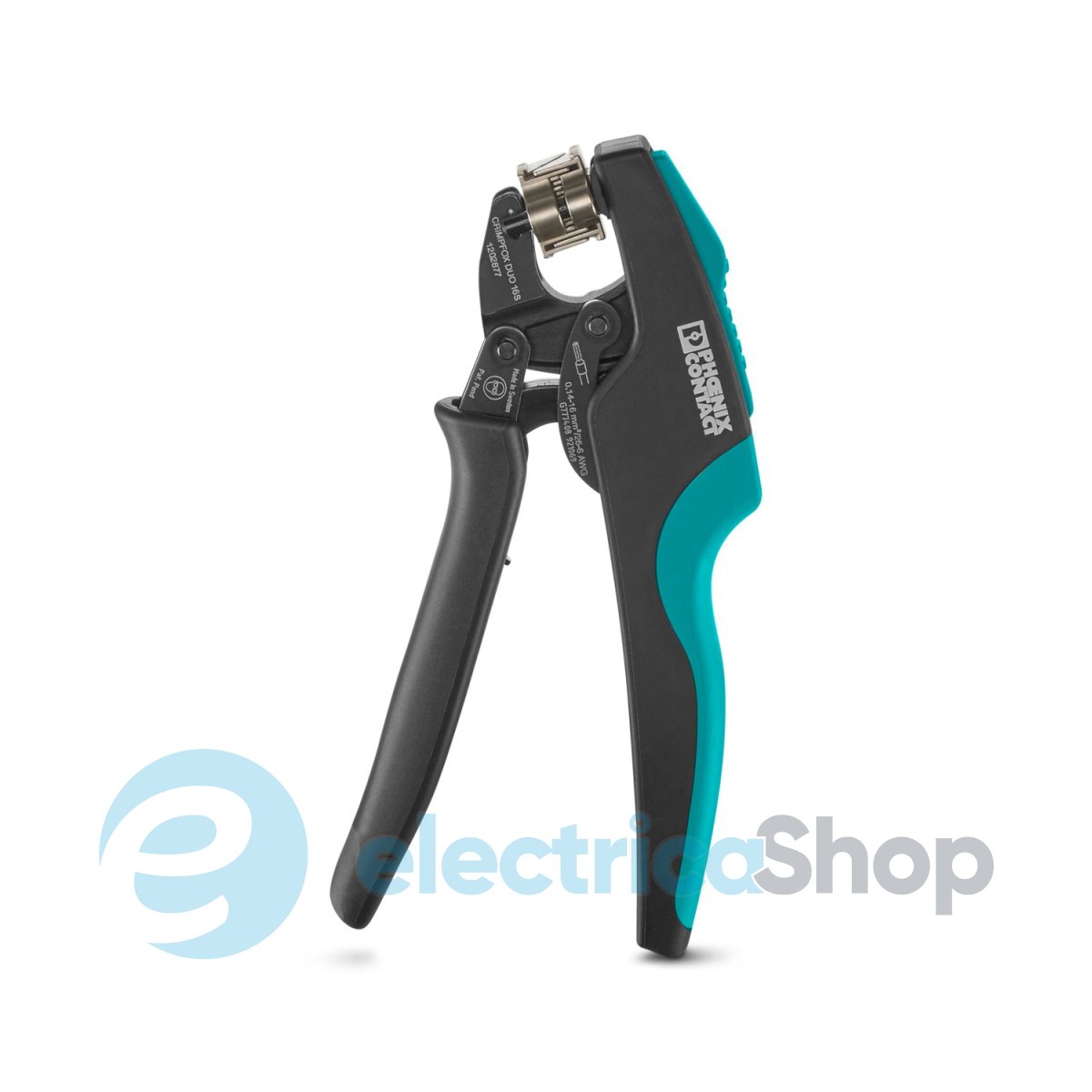 Обжимные клещи, вид контакта: изолированные и неизолированные наконечники, стандарты/положения: DIN 46228-1, DIN 46228-4, UL 486F, форма A, E, F, сечение мин.: 0,14 мм2, сечение макс.: 16 мм2, для наконечников TWIN до 2 x 6 мм2, автоматическая корректировка сечения, поворотная матрица, боковой и фронтальный ввод, вид обжима: квадратный.